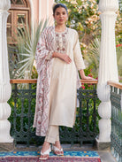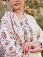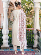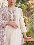 A straight-fit suit set from our latest collection. The set combines a cotton kurta with computerized thread, straight pants and a printed viscose linen dupatta.