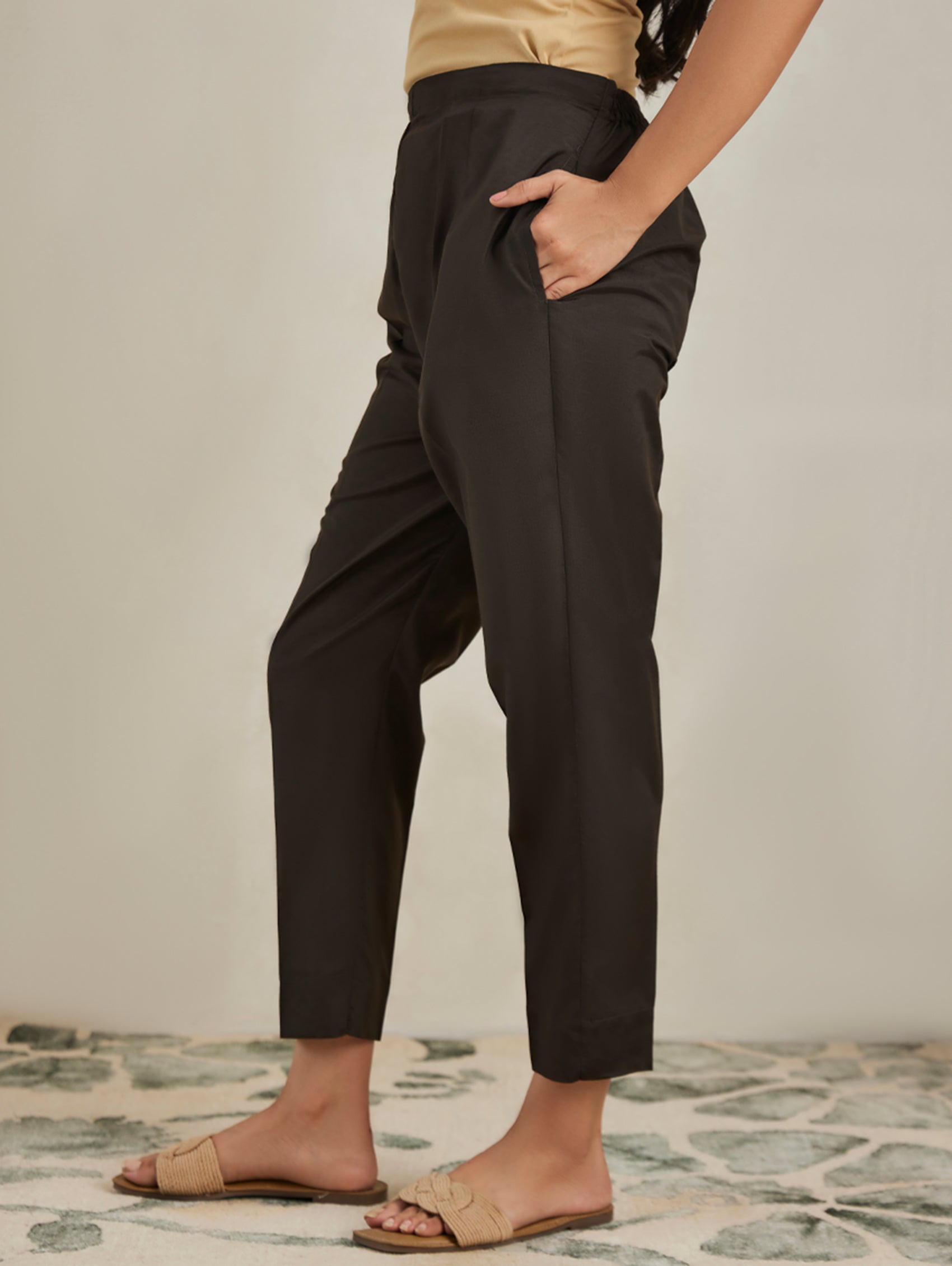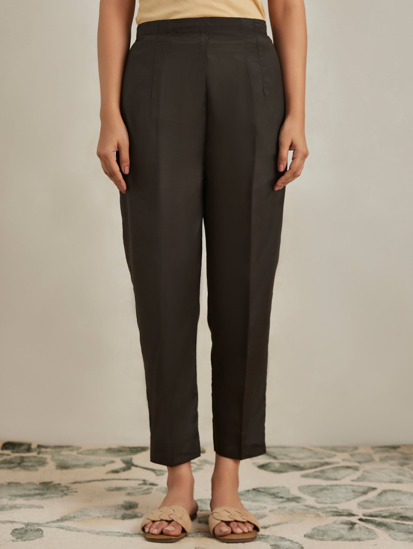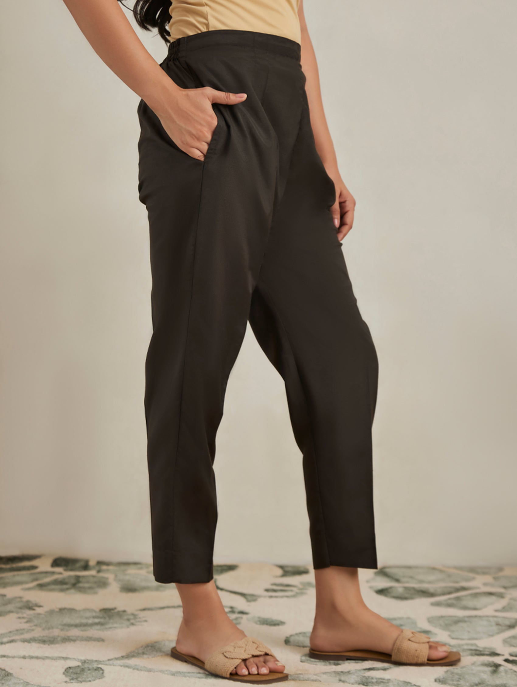 Upgrade your basics collection with these straight-fit silk blend pants from Women Plus. Crafted from the finest fabric featuring a partially elasticated waistband with pockets on either side, making it a perfect choice for mix-and-match. It is gentle to touch and comfortable to wear all day long.