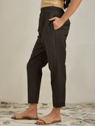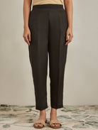 Brown Silk Blend Straight Fit Pants