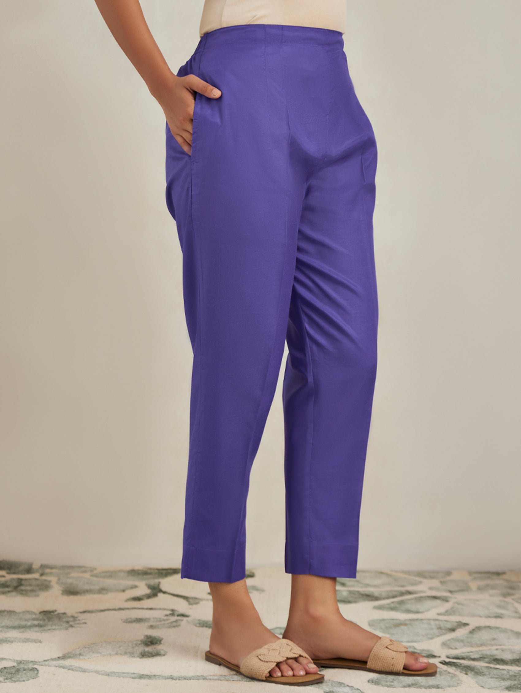 Upgrade your basics collection with these straight-fit silk blend pants from Women Plus. Crafted from the finest fabric featuring a partially elasticated waistband with pockets on either side, making it a perfect choice for mix-and-match. It is gentle to touch and comfortable to wear all day long.