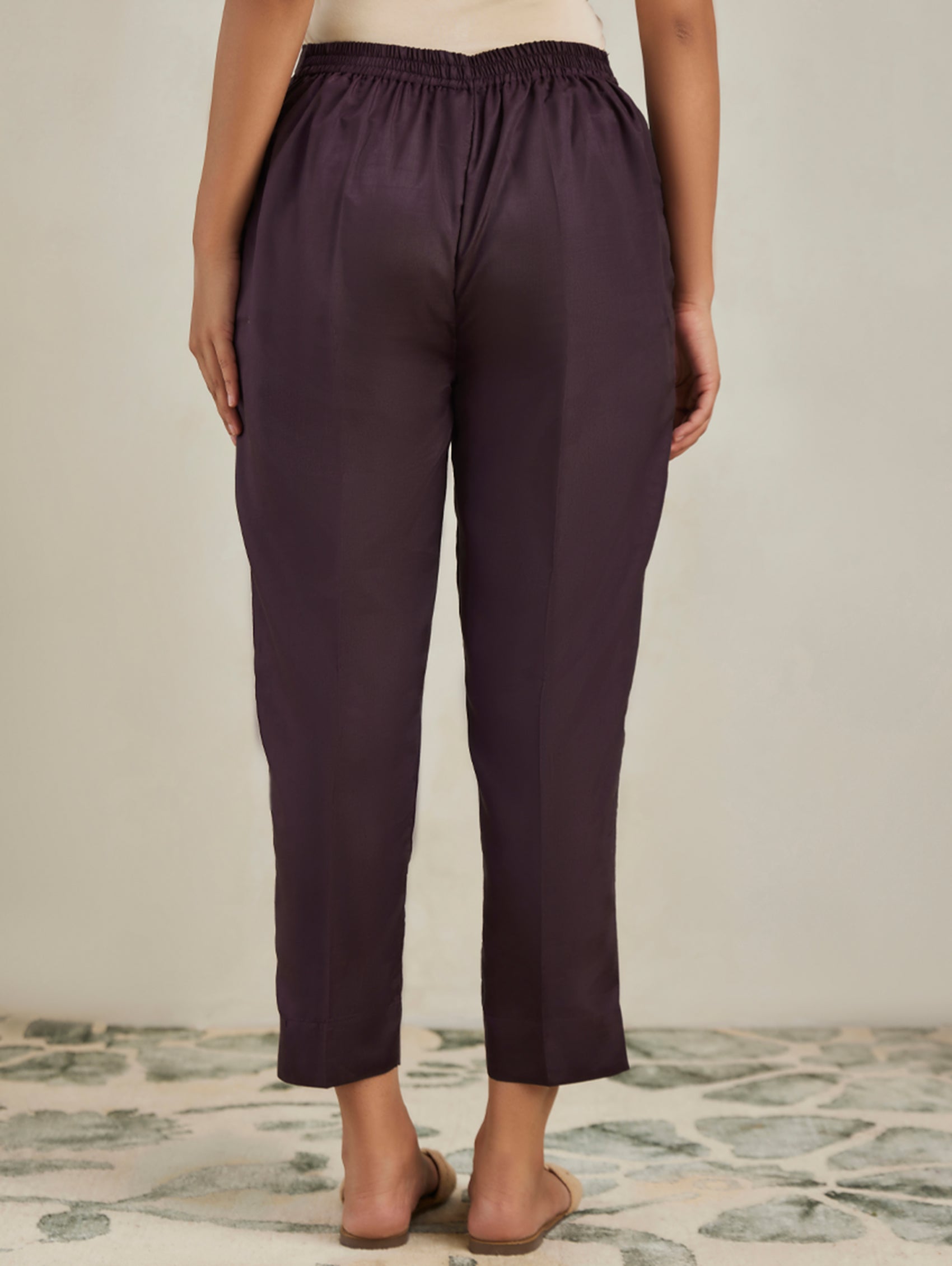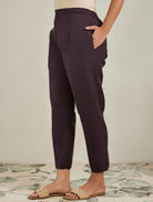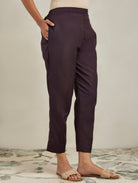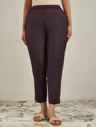 Dark Wine Silk Blend Straight Fit Pants