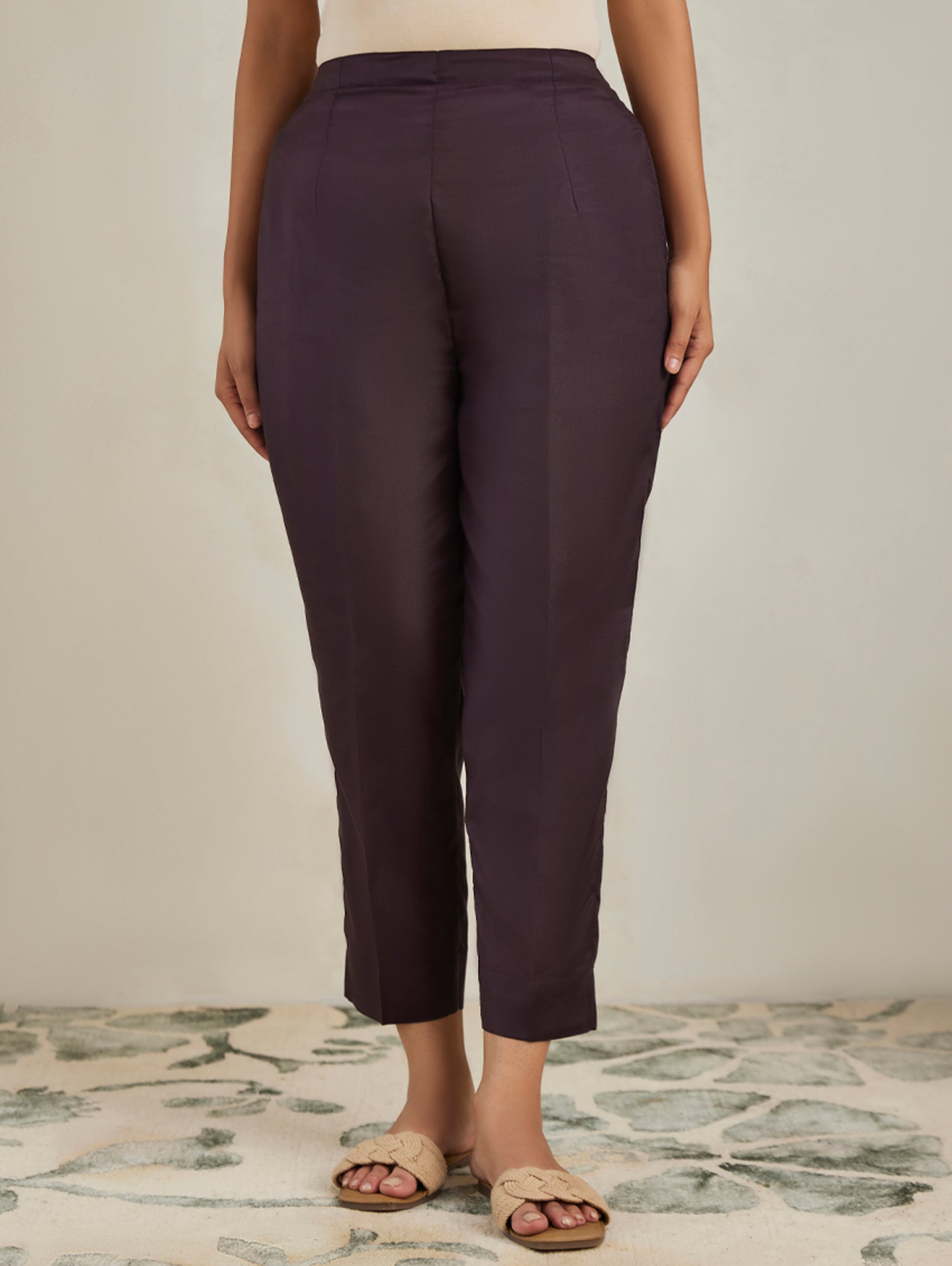 Upgrade your basics collection with these straight-fit silk blend pants from Women Plus. Crafted from the finest fabric featuring a partially elasticated waistband with pockets on either side, making it a perfect choice for mix-and-match. It is gentle to touch and comfortable to wear all day long.