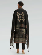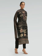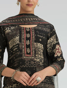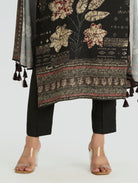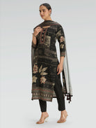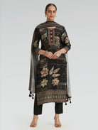 Black Embellished Digitally Printed Viscose Rayon Suit Set with Dupatta