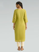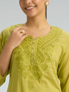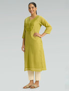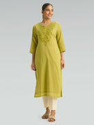 Brass Green Embroidered Pure Cotton Mul Kurta