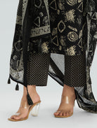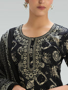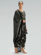 Black Embroidered Pure Cotton Suit Set with Dupatta