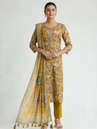 Mustard Brown Embroidered Pure Malai Cotton Suit Set with Dupatta