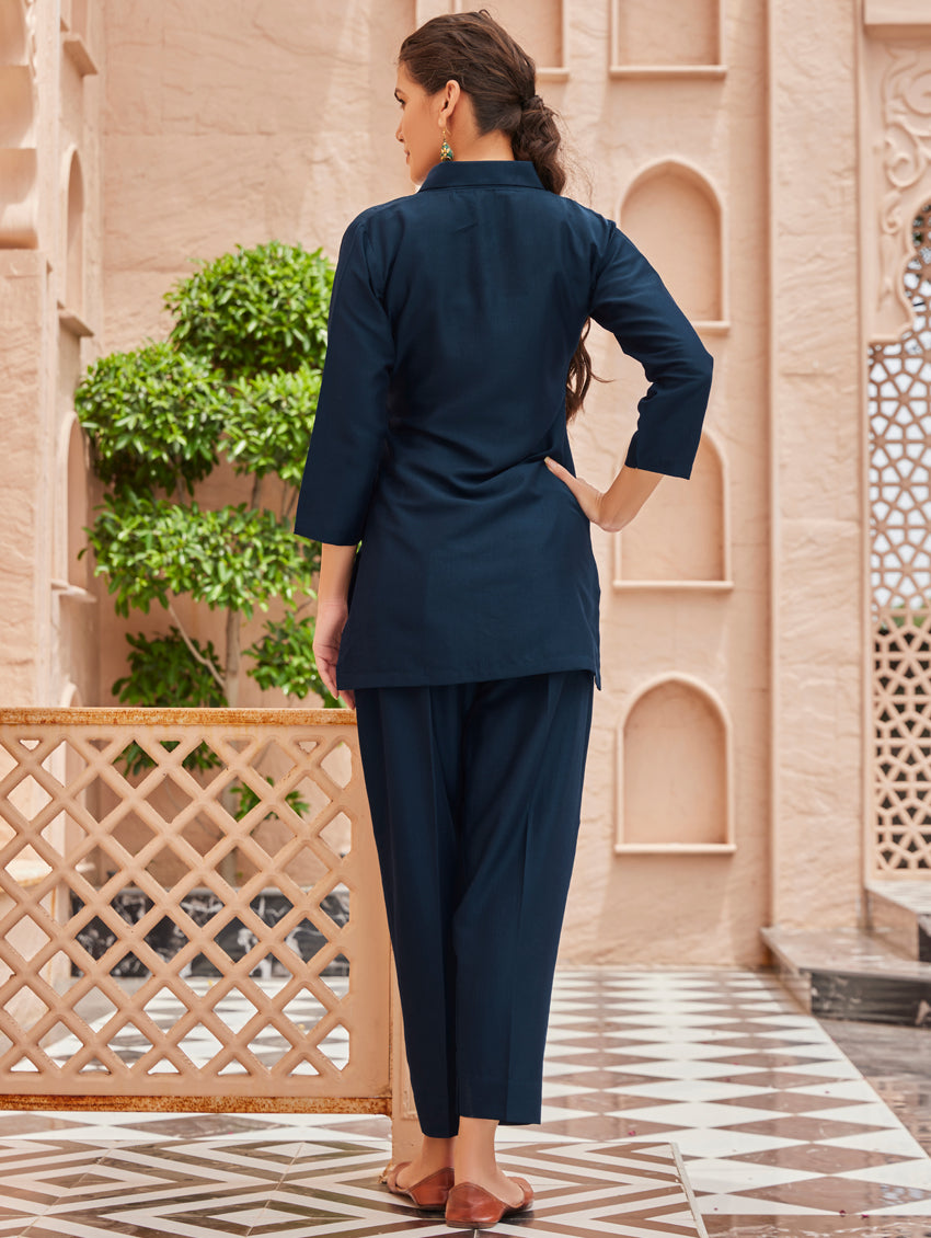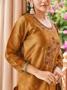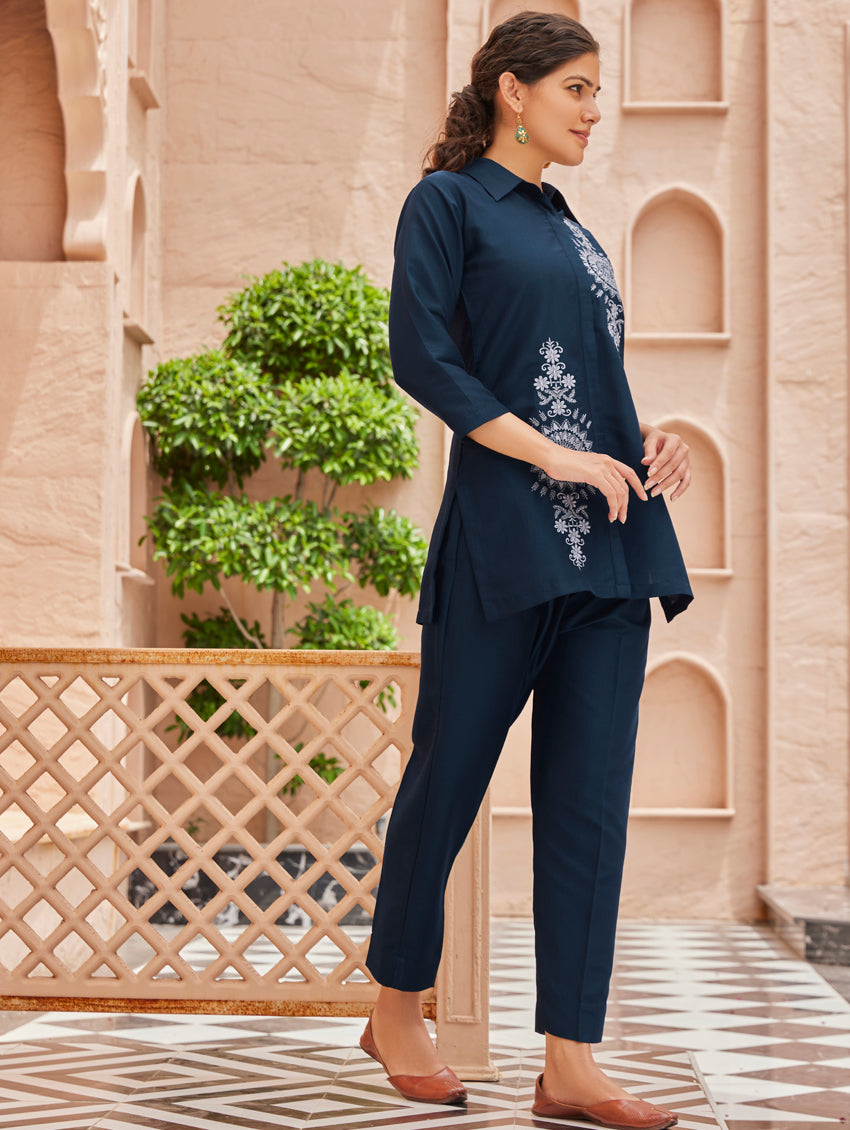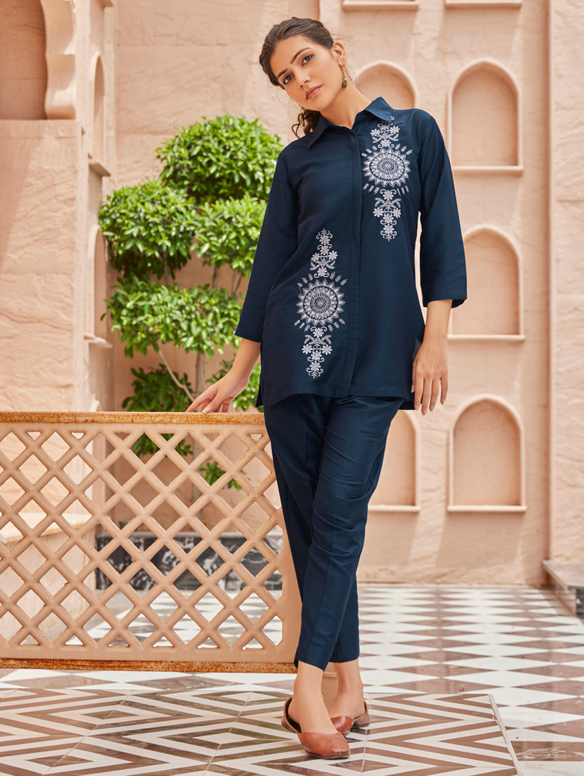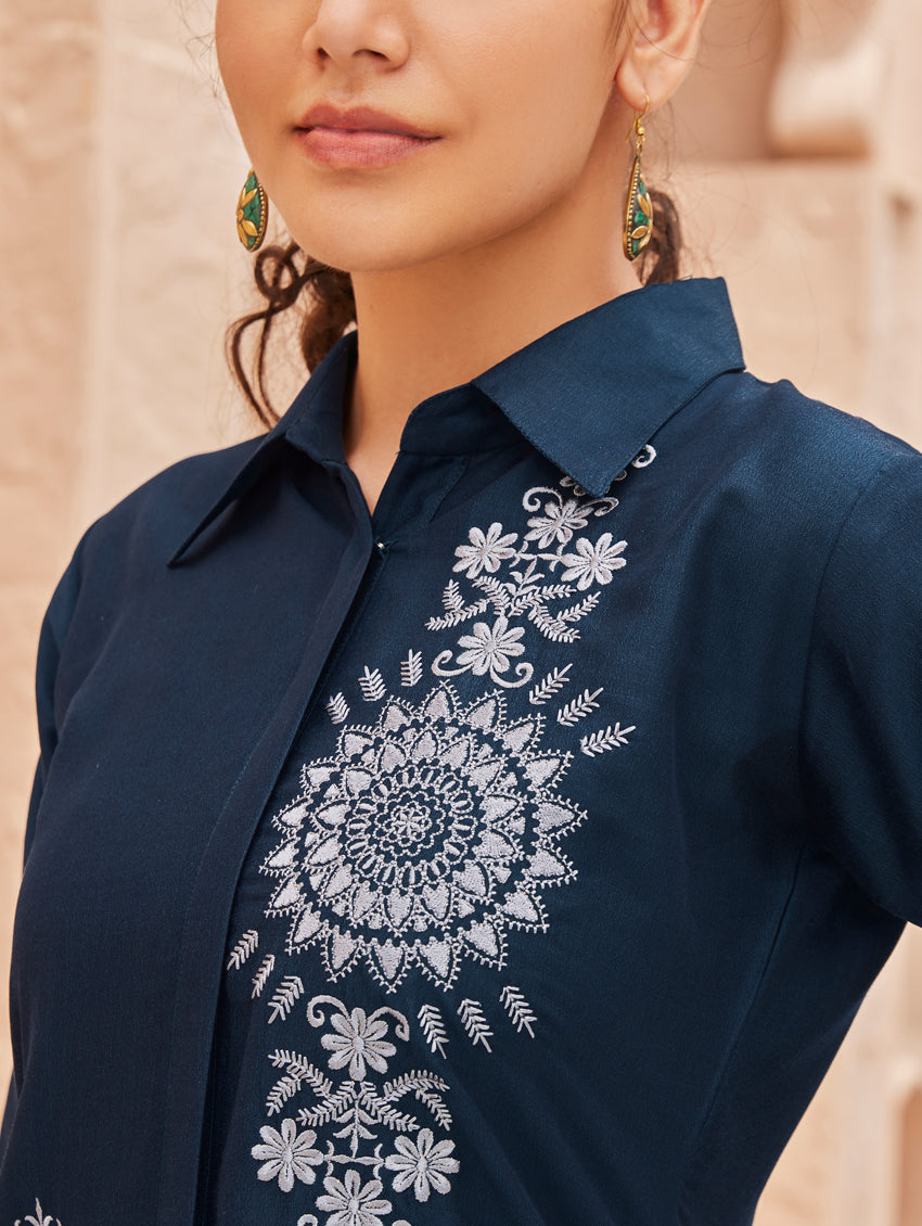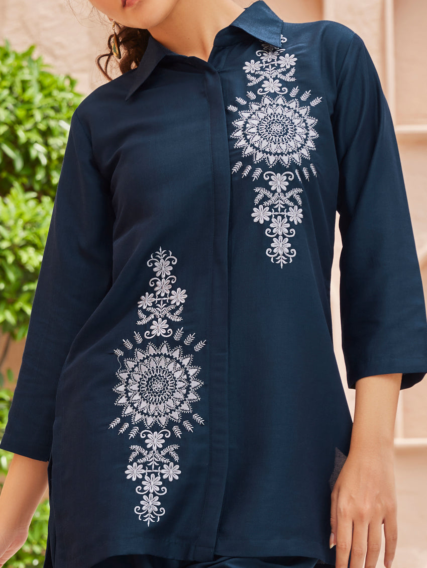• Computerised thread embroidery along with hand embroidery on the kurta