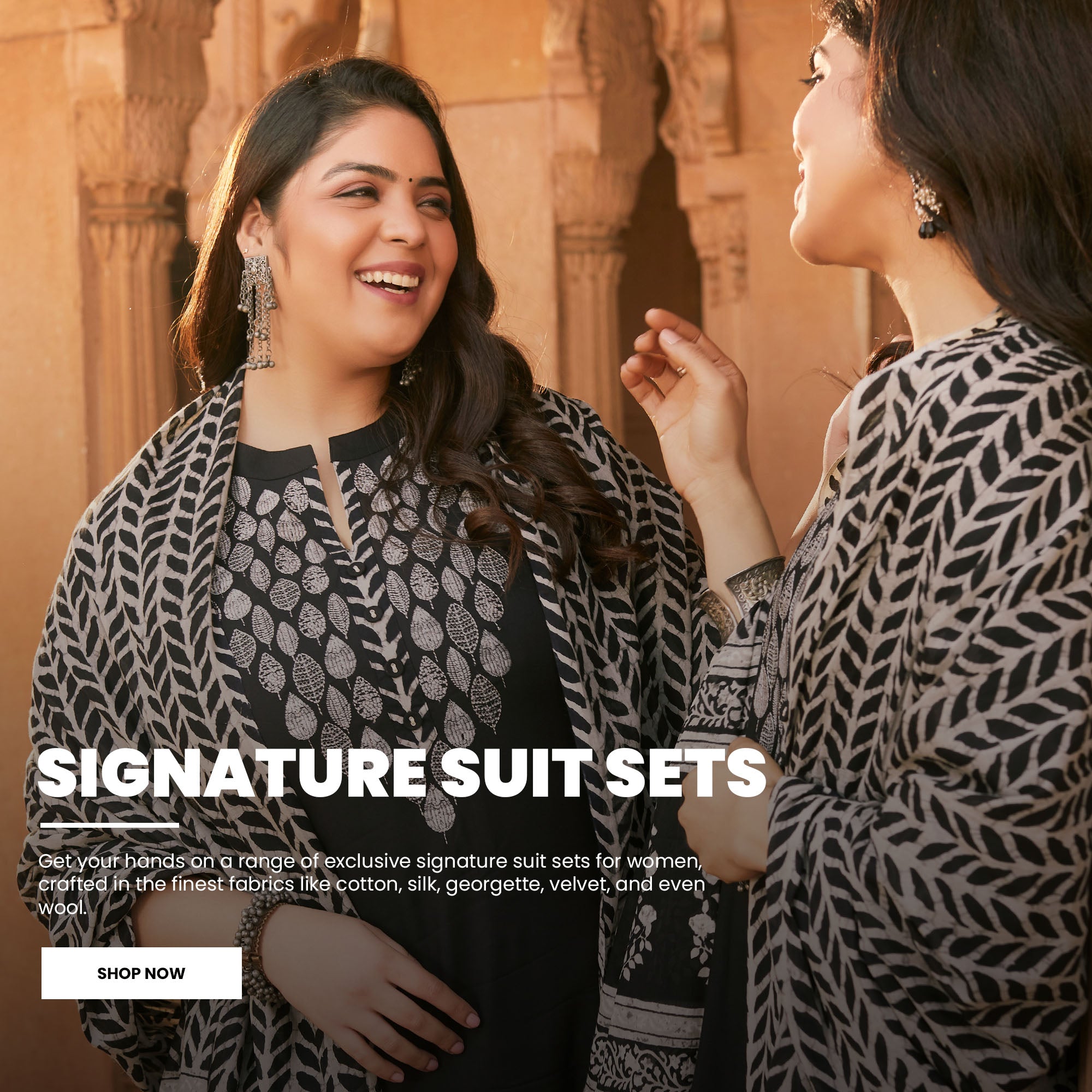 As design pioneers in the traditional Indian readymade wear, we offer a myriad of design options to choose from, an exquisite fusion modern and artisanal work, customisable suit sets, kurtas and kurta sets, size inclusive options from S to 10XL, and with a dedicated range of 100% pure handloom cotton fabric we dreamed to reach every woman’s wardrobe.