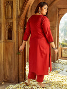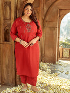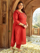 Let simplicity work for you wearing this kurta by Women Plus. It comes featuring a round neckline, computerized thread embroidery, three fourth sleeves, and slits on either side. Crafted in the finest handloom cotton, this kurta is perfect to keep you cool in the summers.