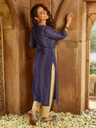 • Round neckline kurta with three fourth sleeves and side slits open
