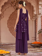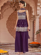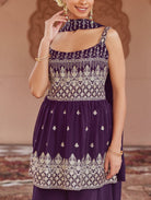 Introducing a stunning peplum-style suit set from our newest festive collection! This set includes a flared kurta, sharara, and dupatta all crafted from exquisite Georgette fabric. The kurta is adorned with intricate zari thread embroidery and delicate sequence work, made possible through advanced computerized technology. Elevate your style with this elegant and luxurious ensemble.