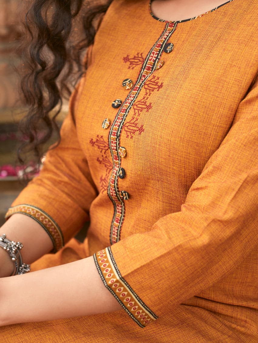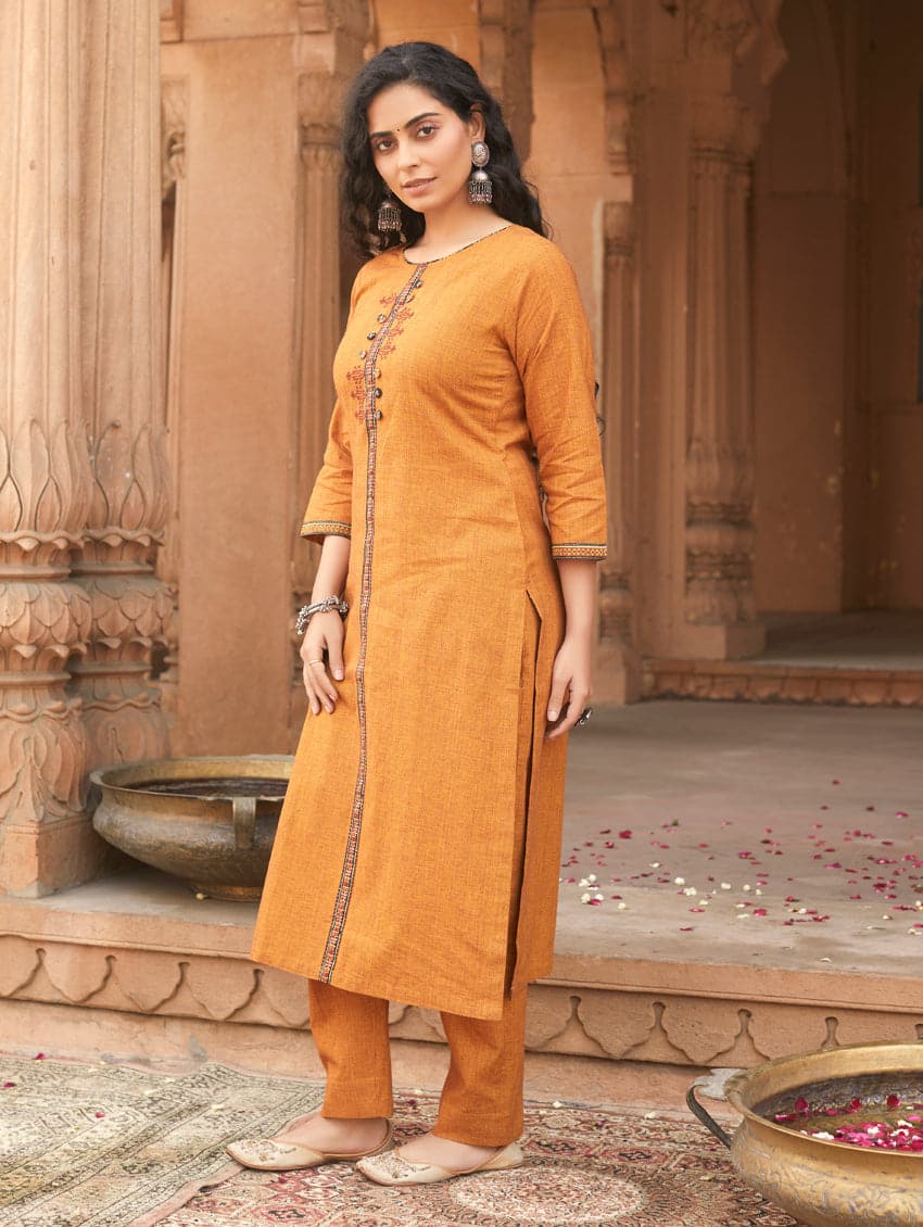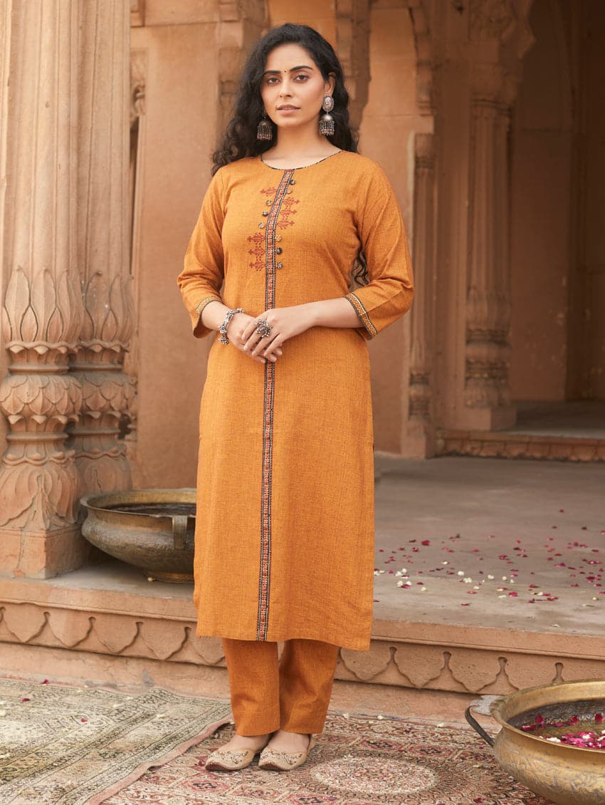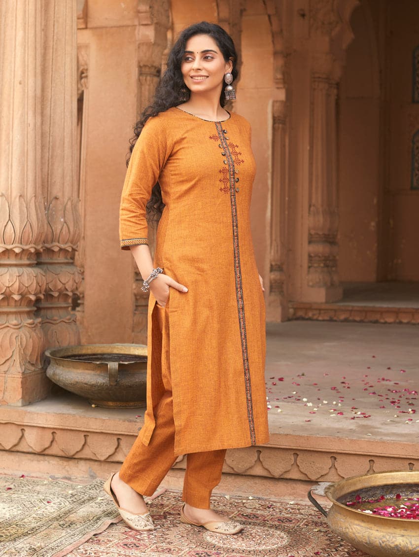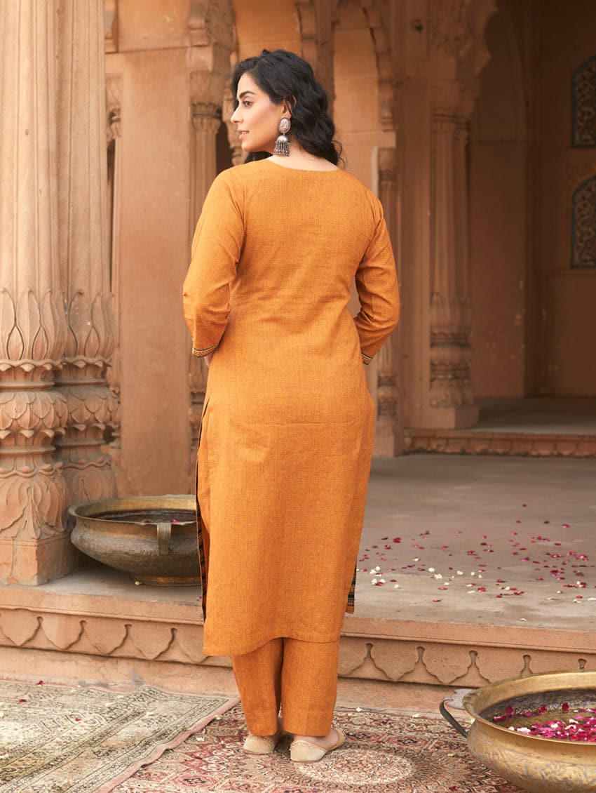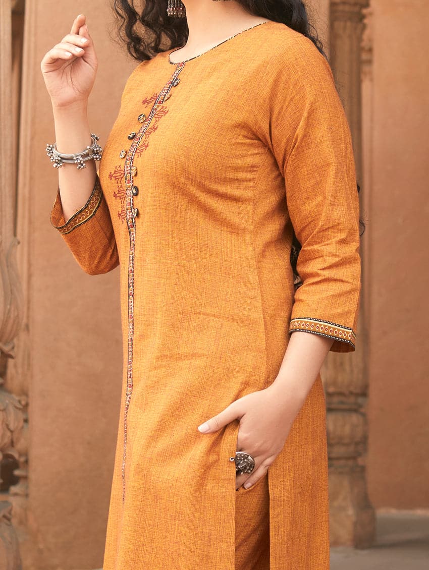 Let simplicity work for you wearing this kurta by Women Plus. It comes featuring a round neckline, computerized thread embroidery, three fourth sleeves, and slits on either side. Crafted in the finest handloom cotton, this kurta is perfect to keep you cool in the summers.
