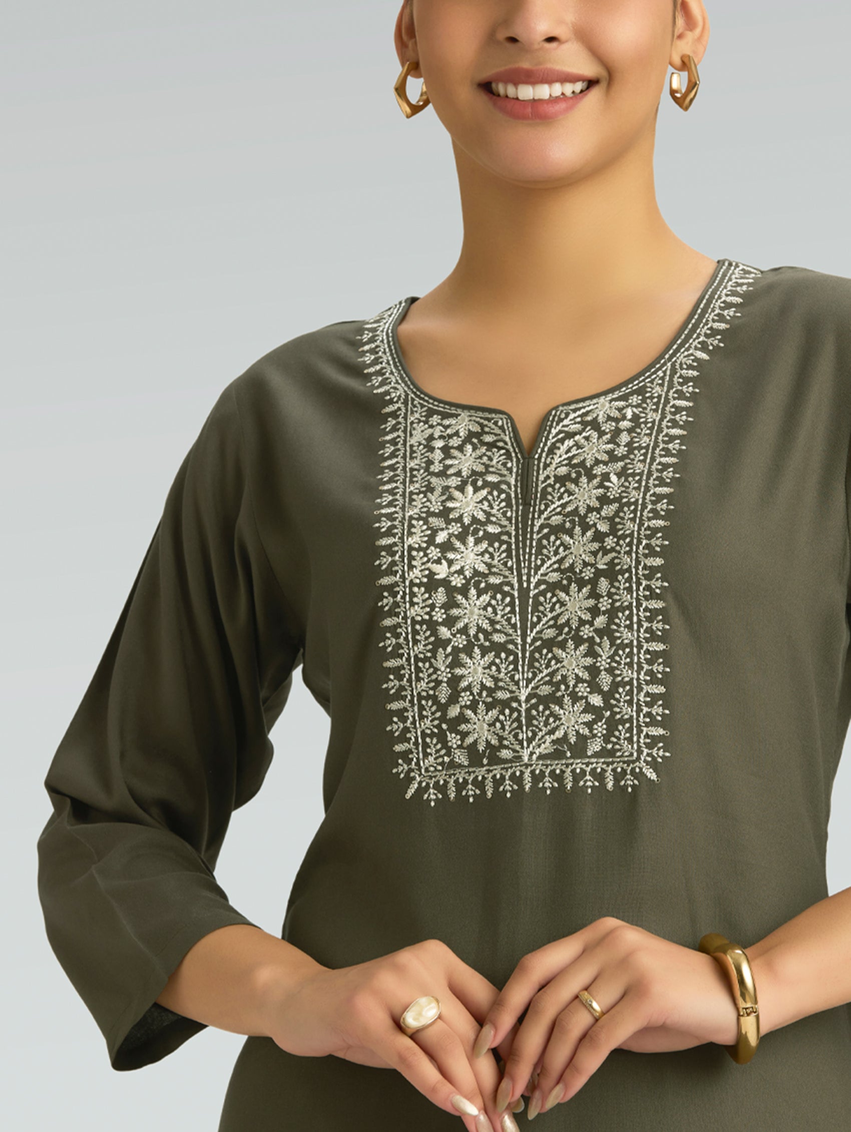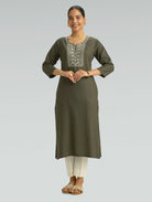 Crocodile Grey Embroidered Viscose Rayon Kurta