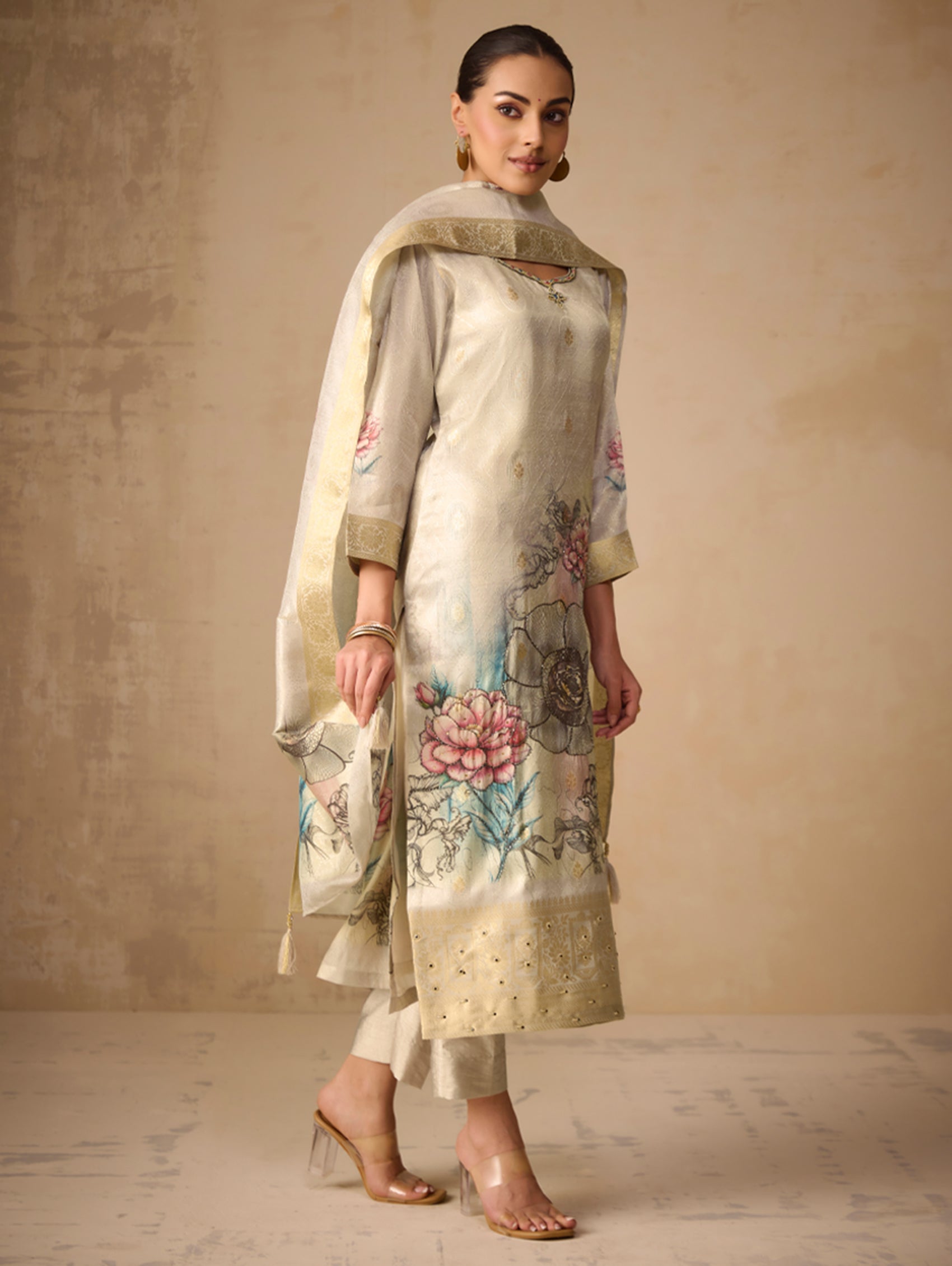 Digitally Printed Jacquard Shimmer Silk Suit Set 4380