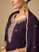 Discover sophistication in this straight-fit suit made from luxurious viscose silk. The kurta features detailed cording thread embroidery and pairs seamlessly with coordinating straight palazzo pants and an embroidered viscose silk dupatta. This set blends timeless craftsmanship with contemporary fashion, giving you a refined and effortlessly chic look.