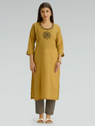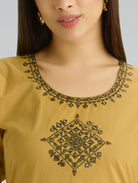 Harvest Gold Embroidered Pure Cotton Kurta