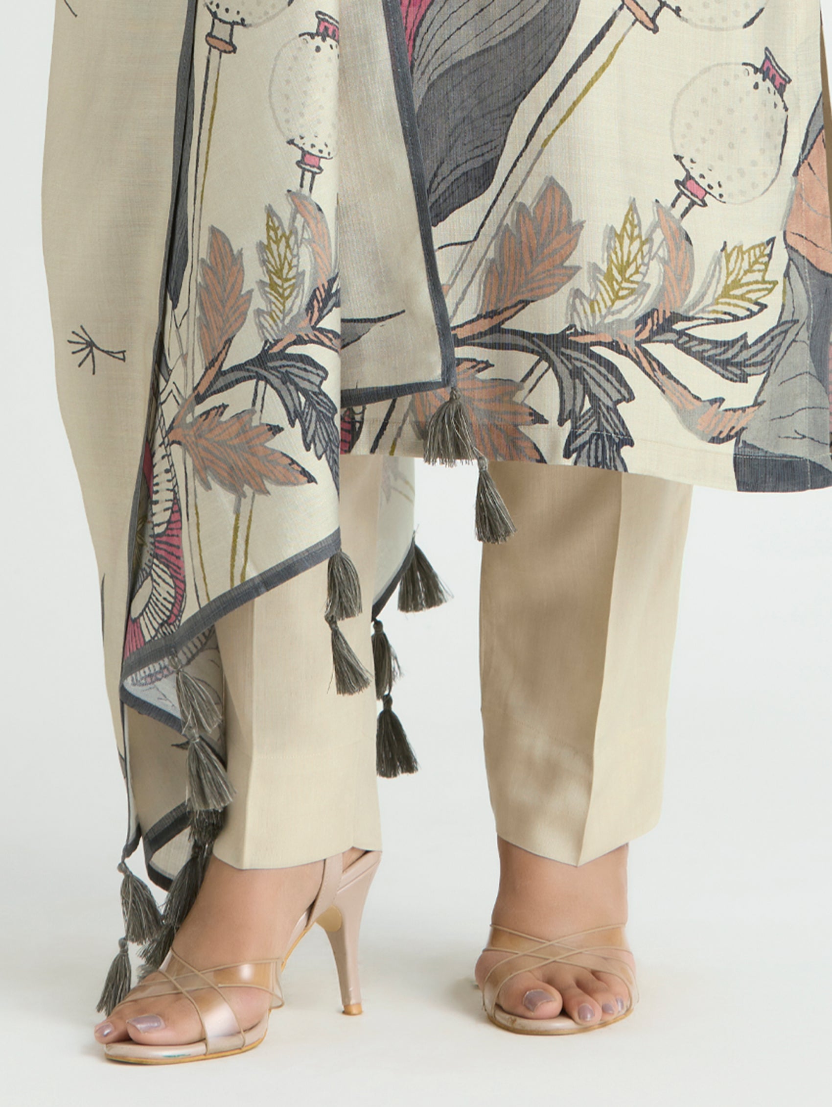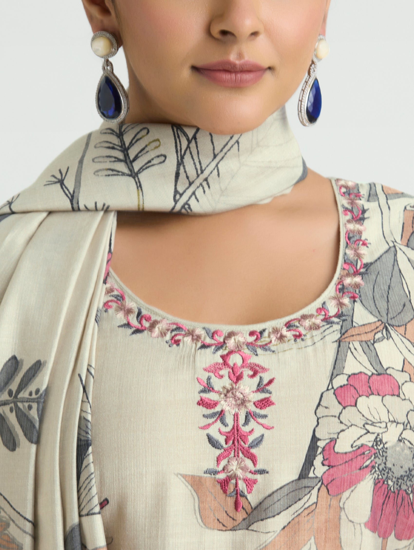 Platinum Embroidered Digitally Printed Viscose Suit Set with Dupatta