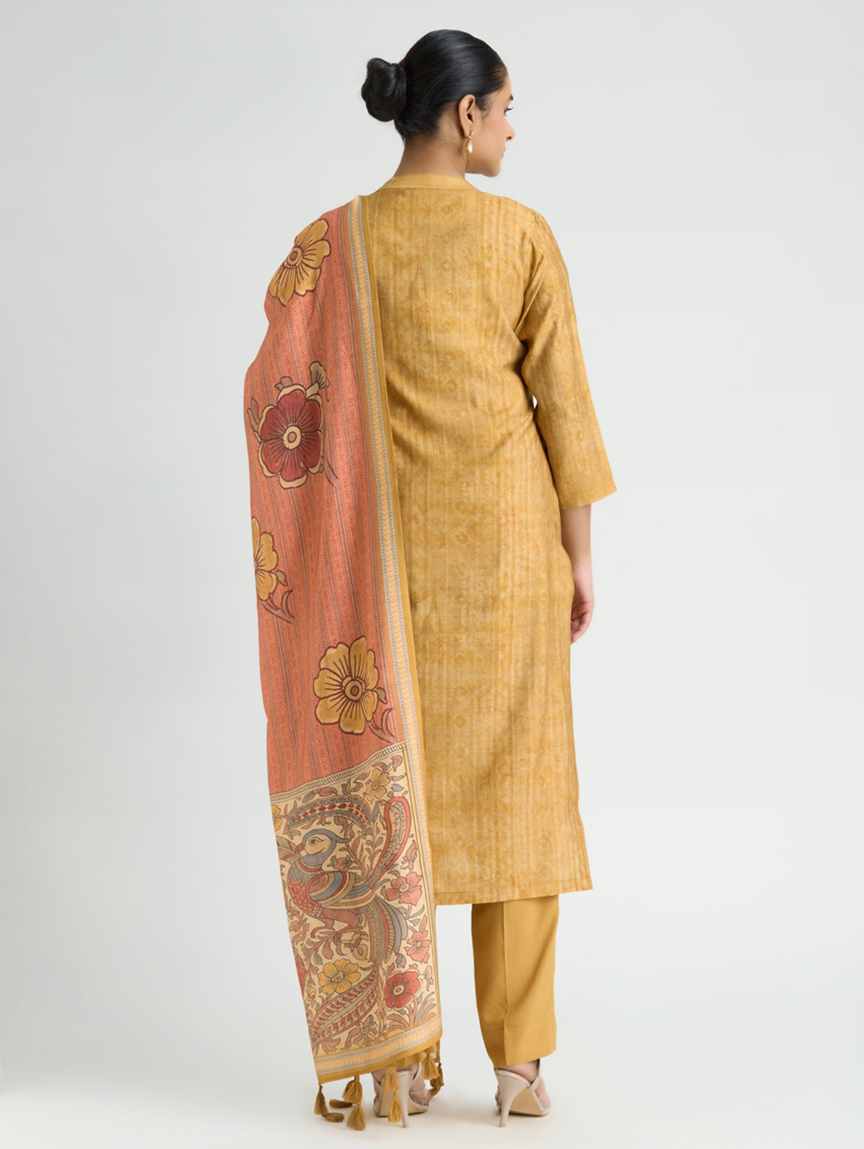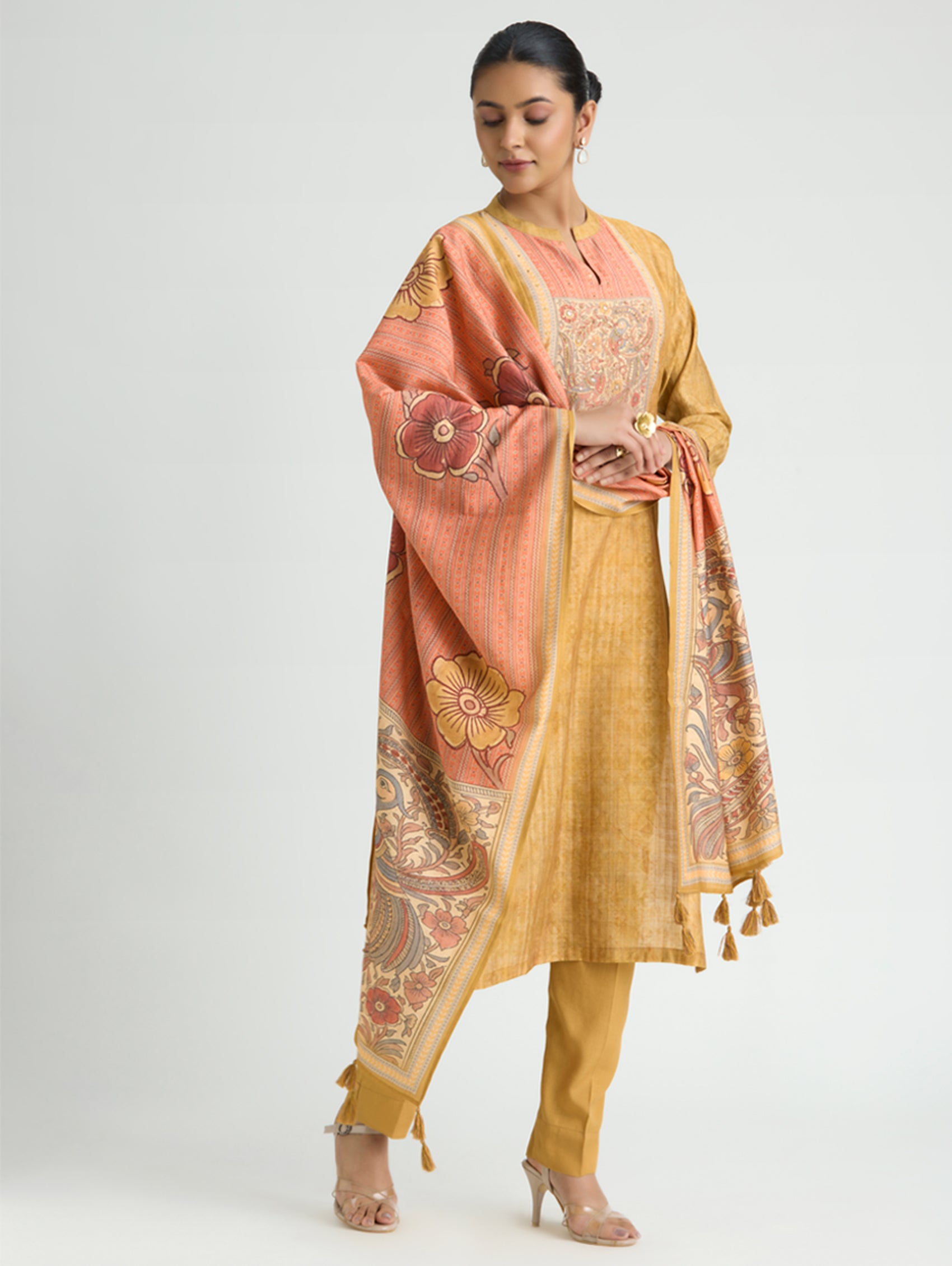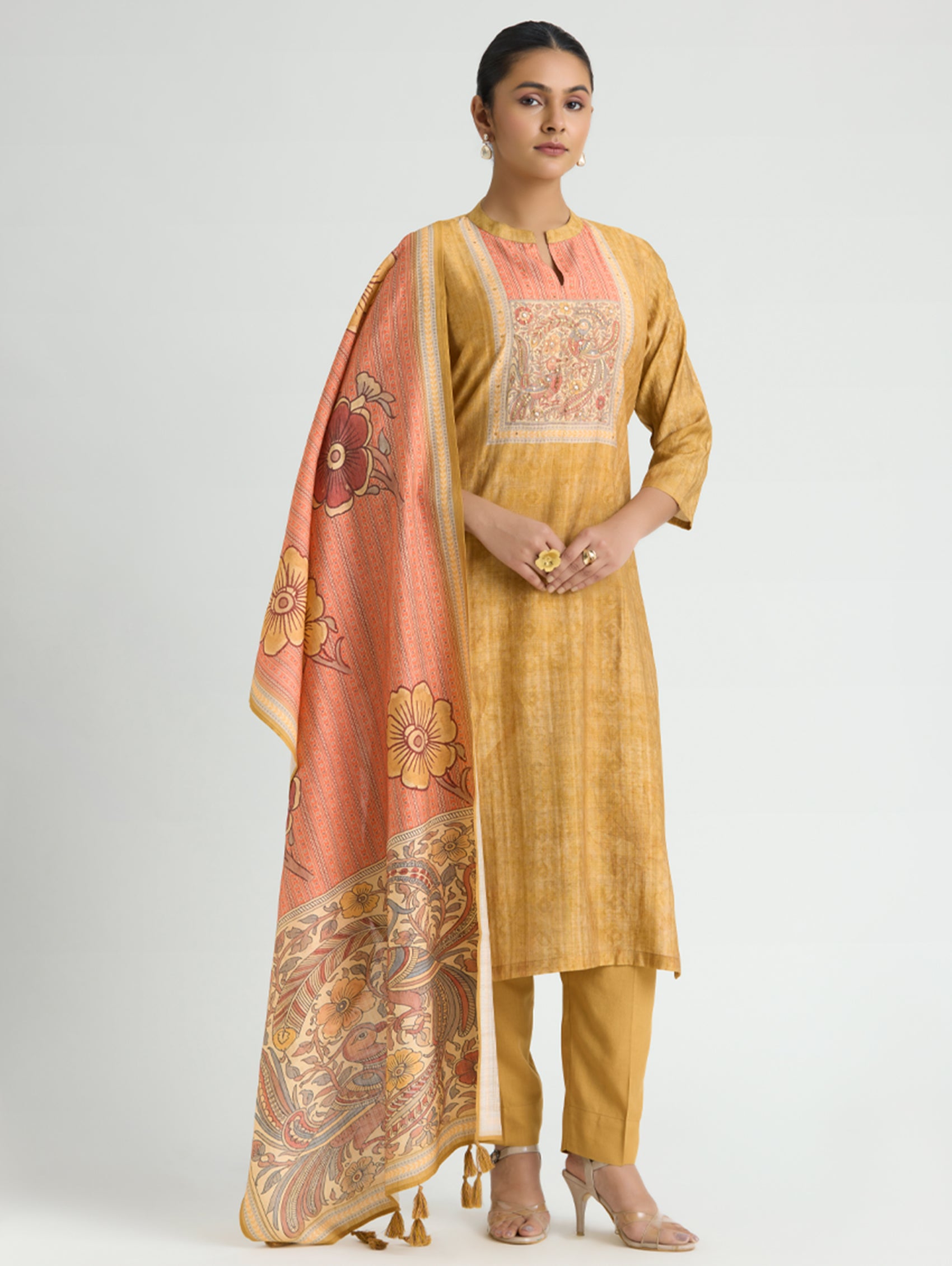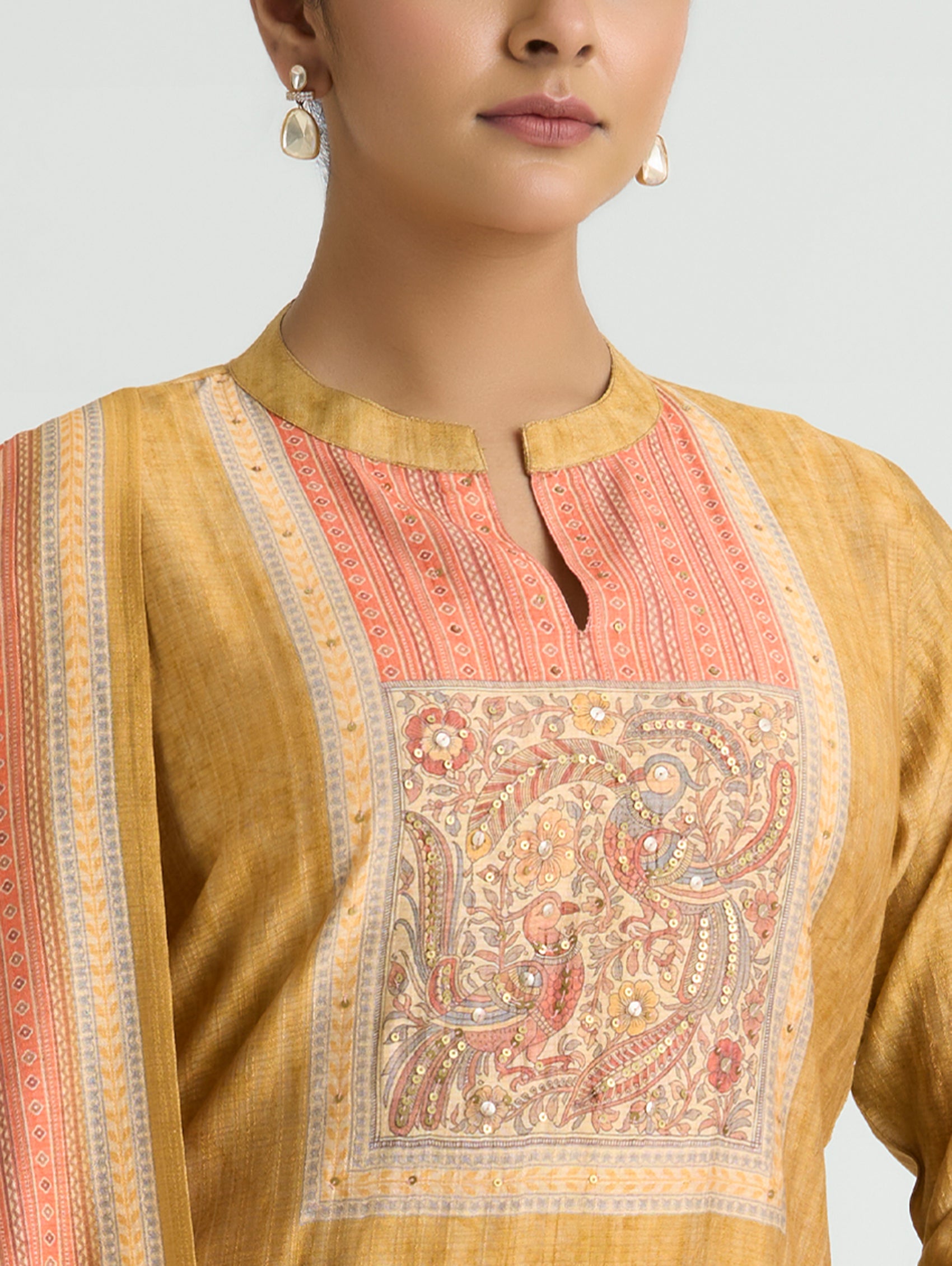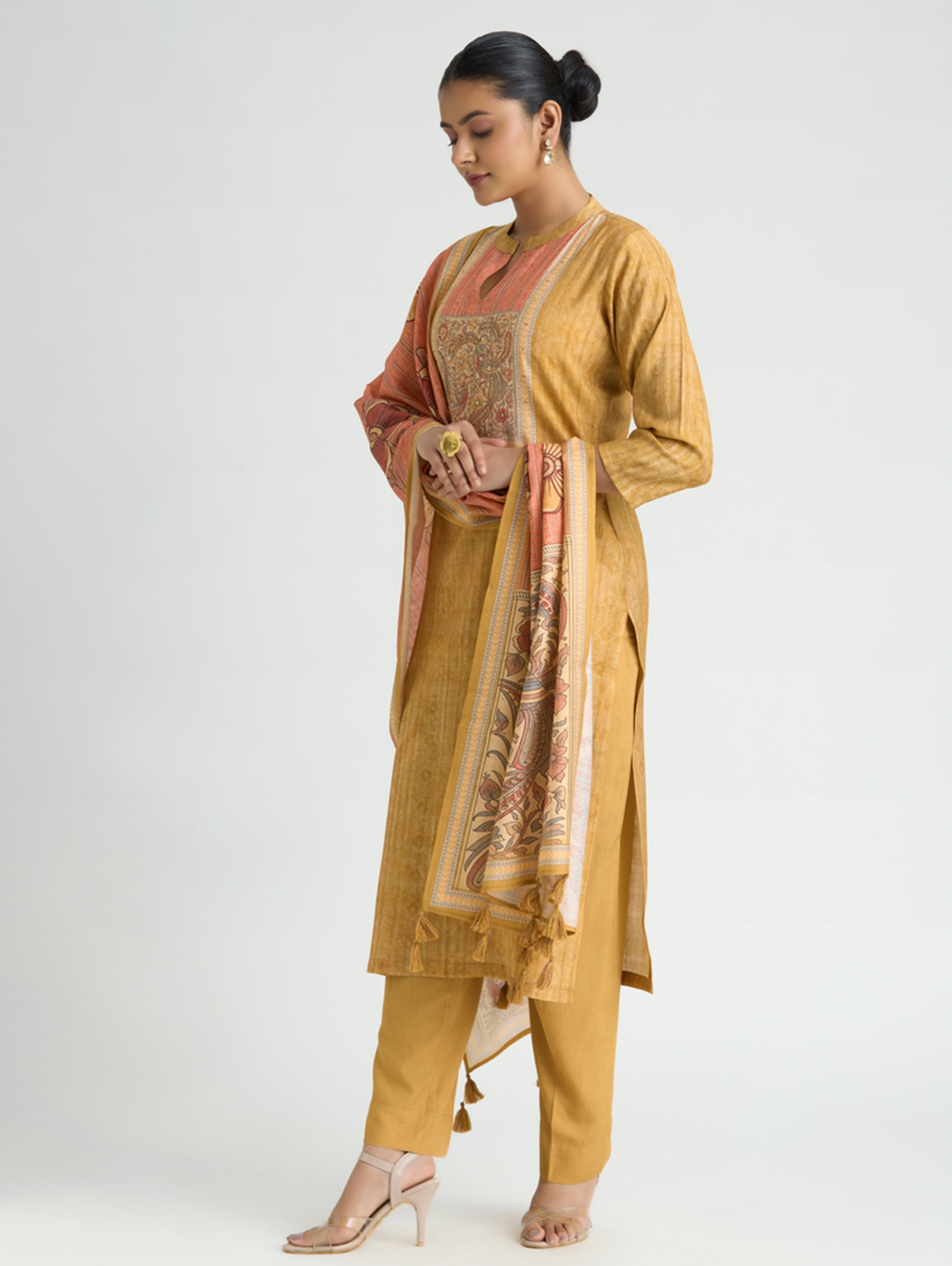 Apache Yellow Embellished Digitally Printed Viscose Suit Set with Dupatta