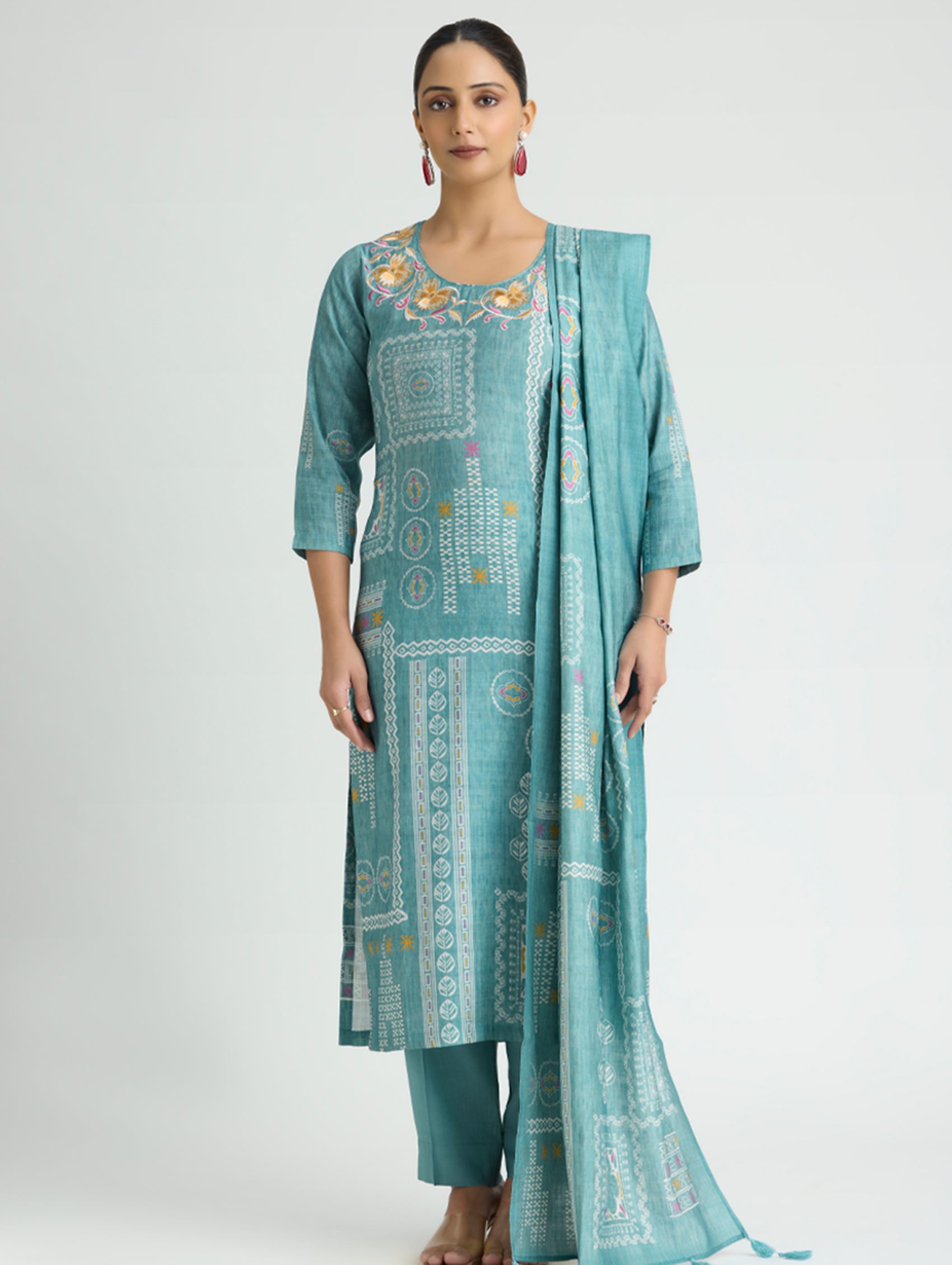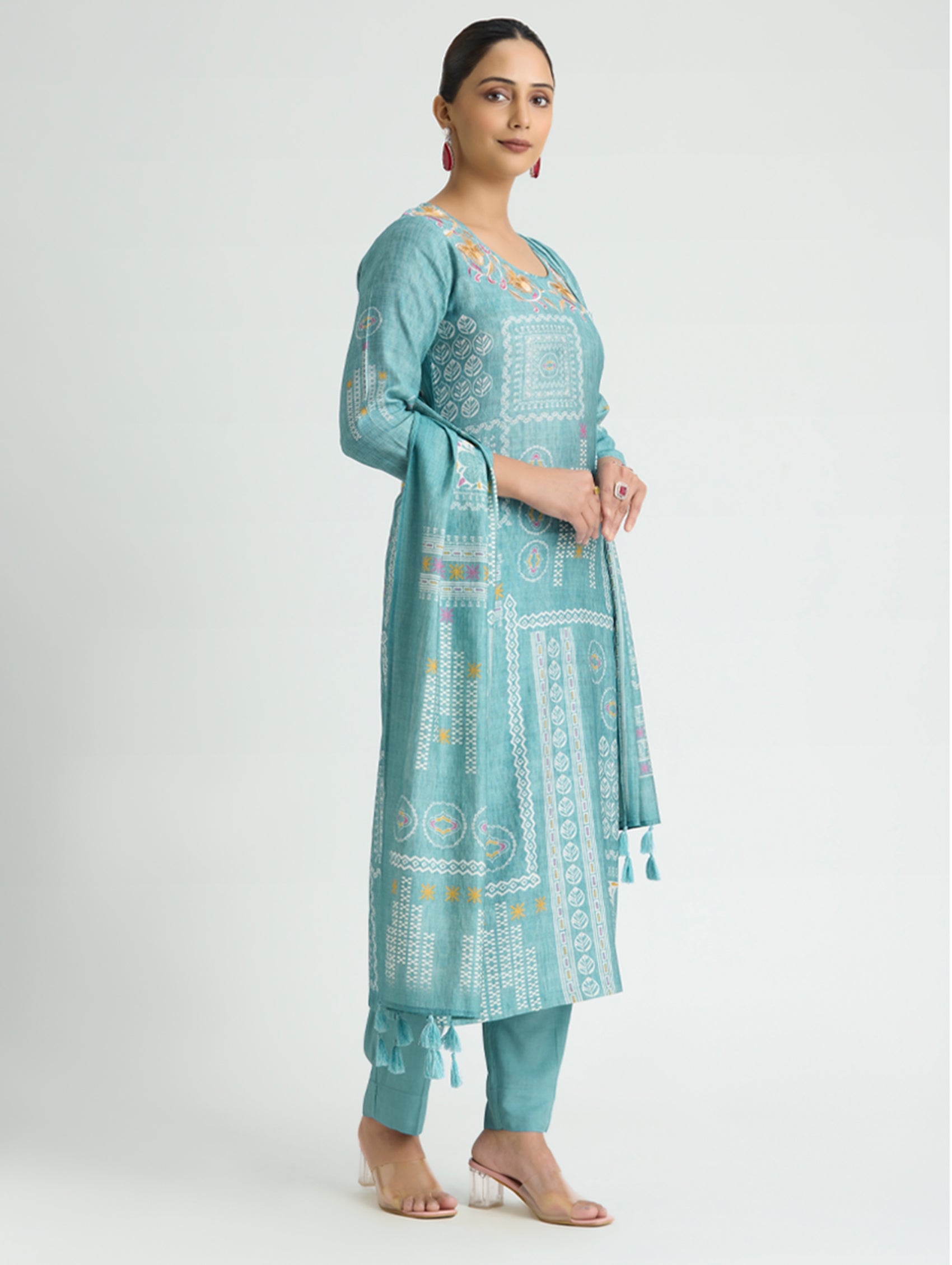 • Kurta with pants and digitally printed viscose dupatta