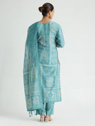 Neptune Blue Embroidered Digitally Printed Viscose Suit Set with Dupatta