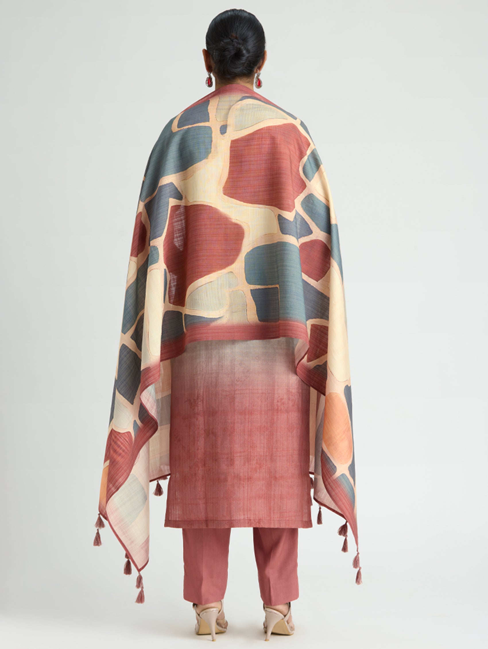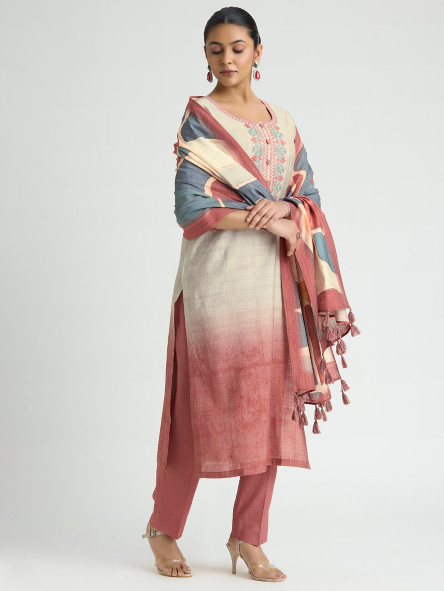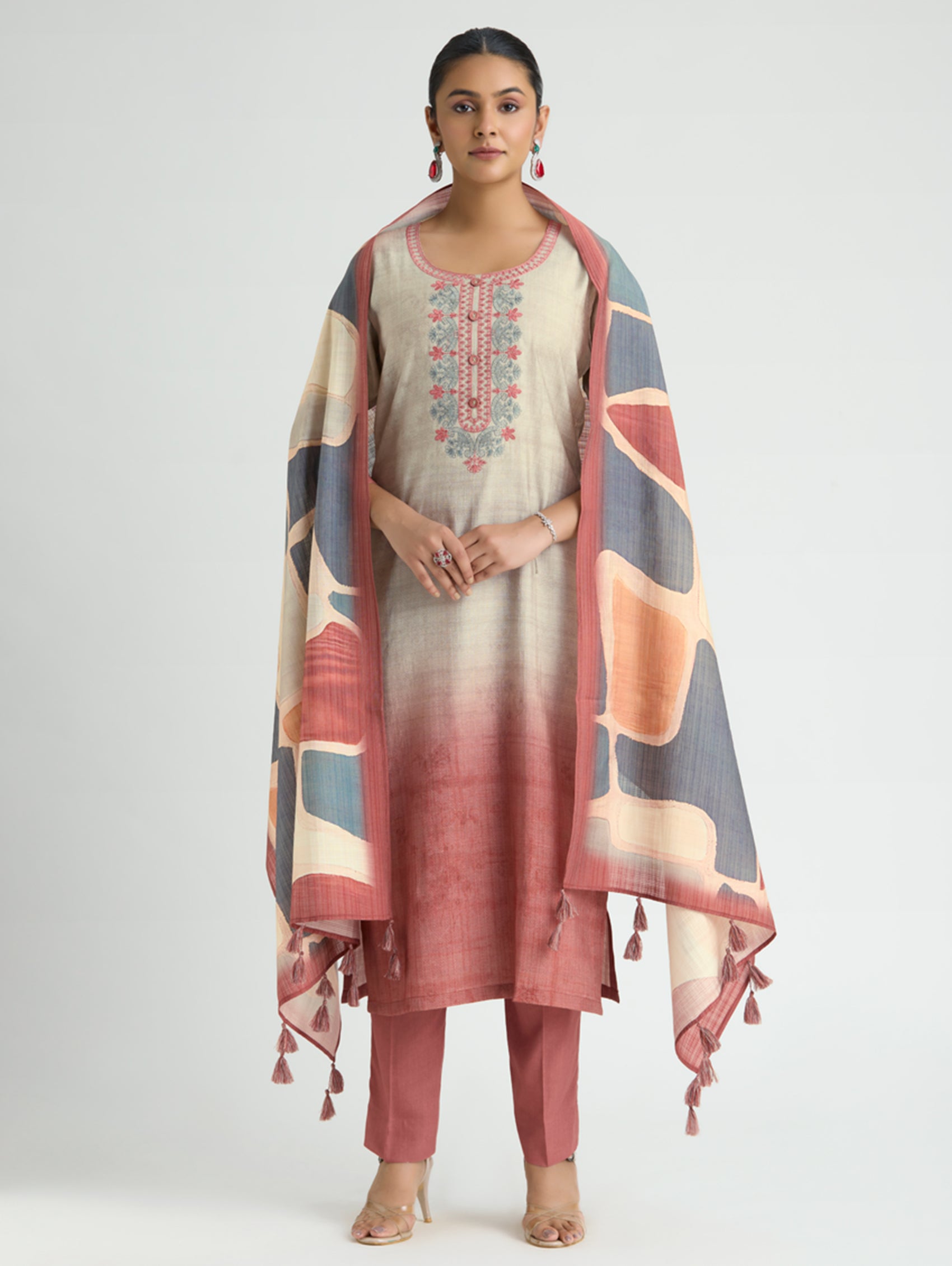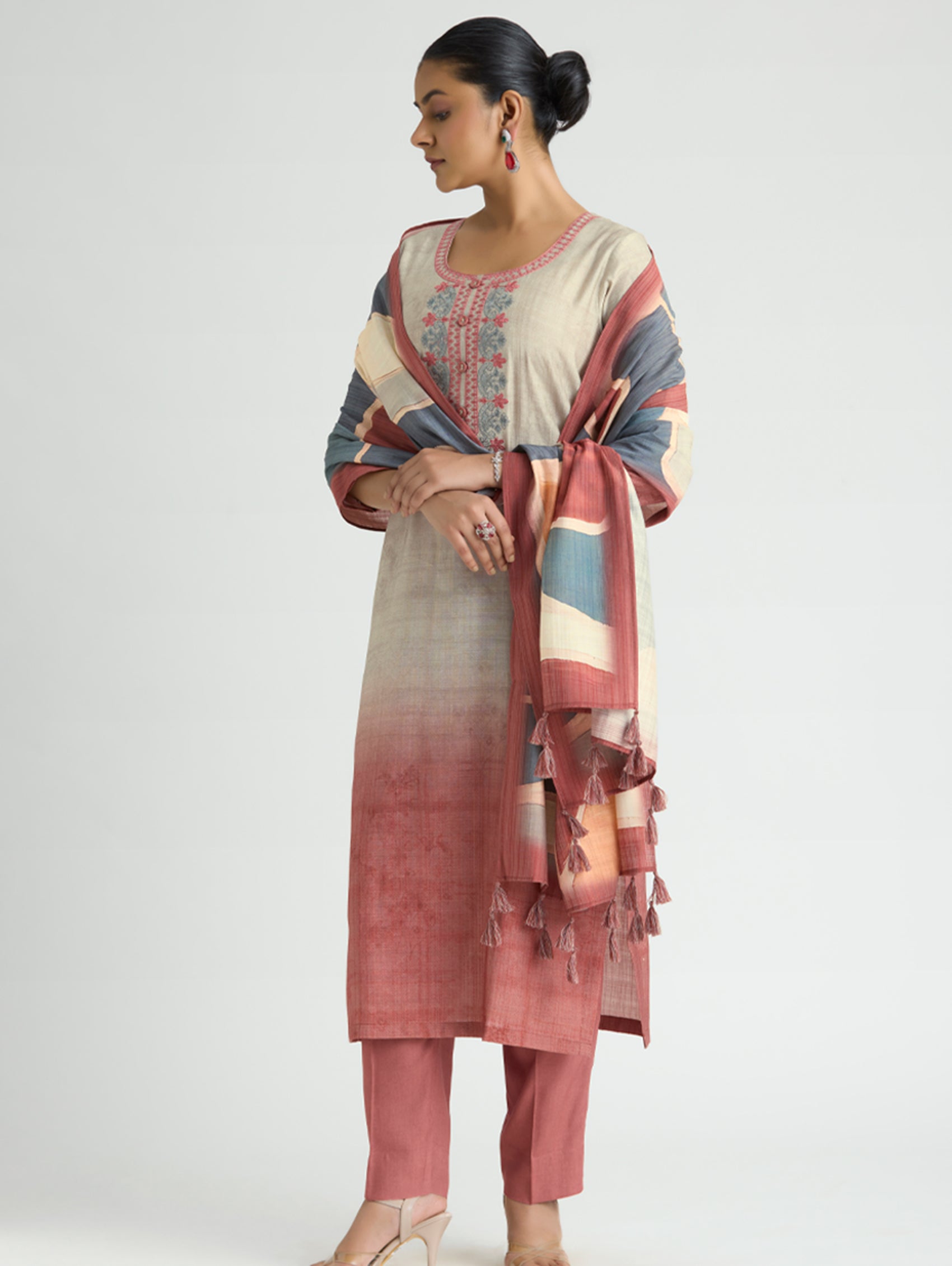 Ombre-Rose Vale Embroidered Digitally Printed Viscose Suit Set with Dupatta
