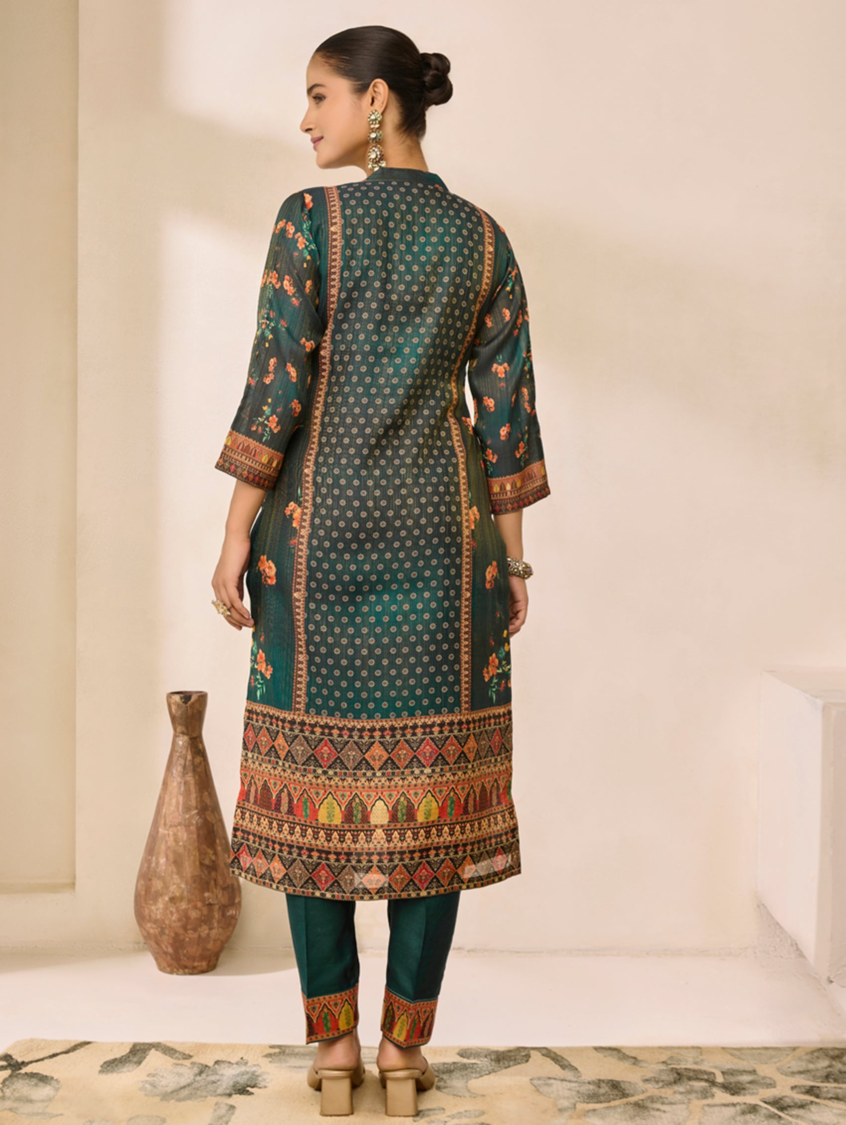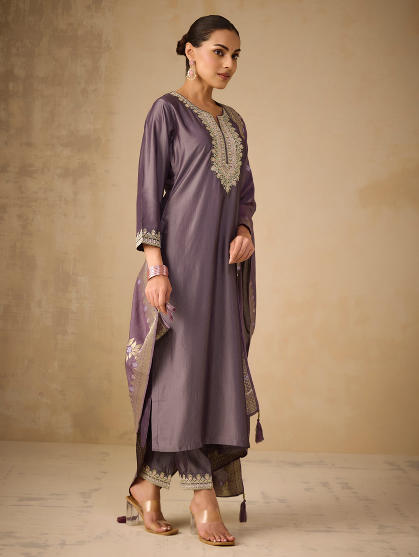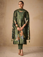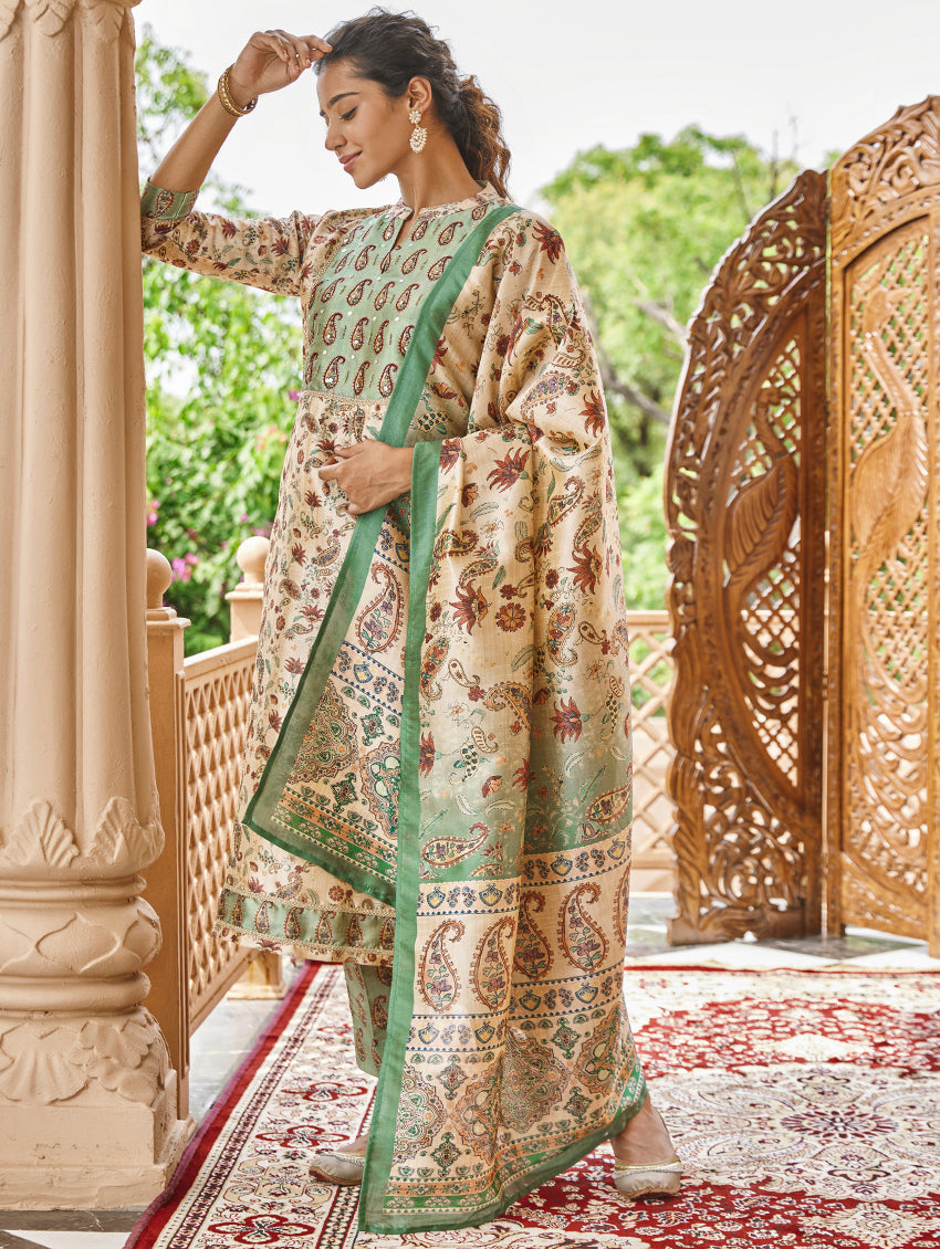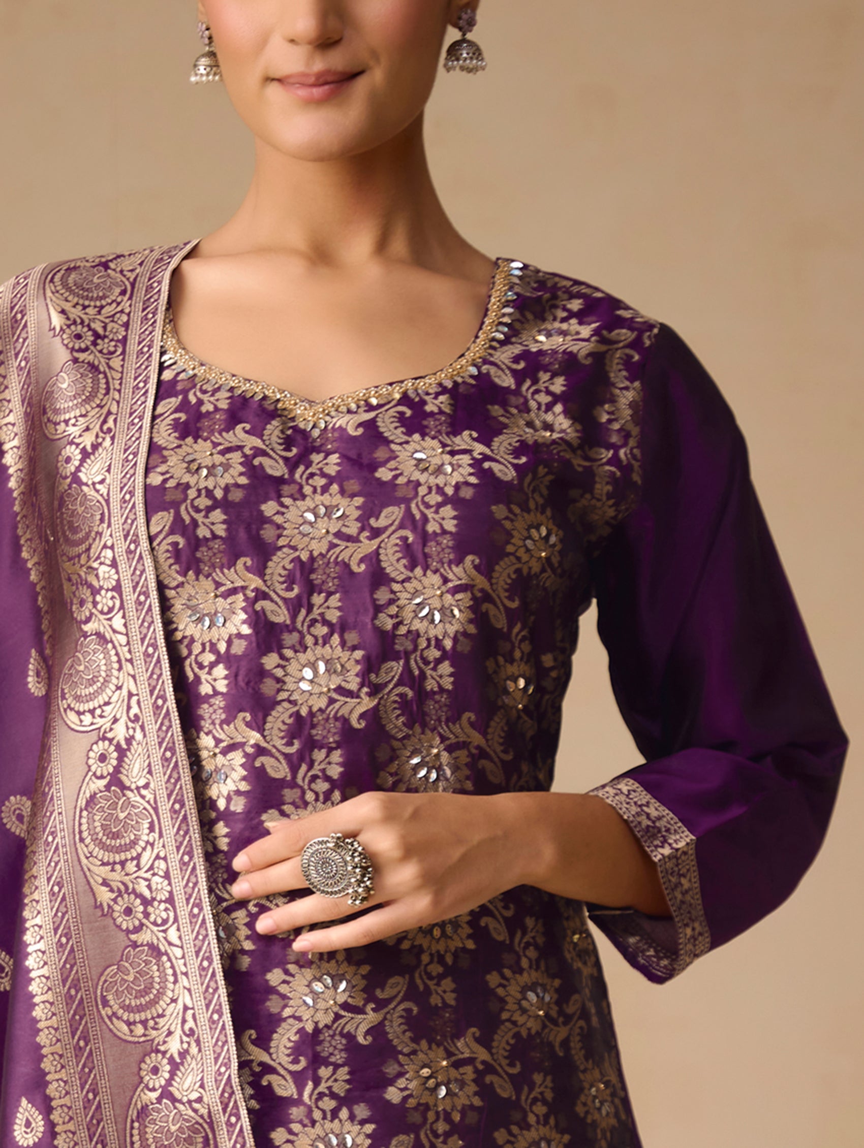 • Kurta with pants and digitally printed jacquard weave silk dupatta