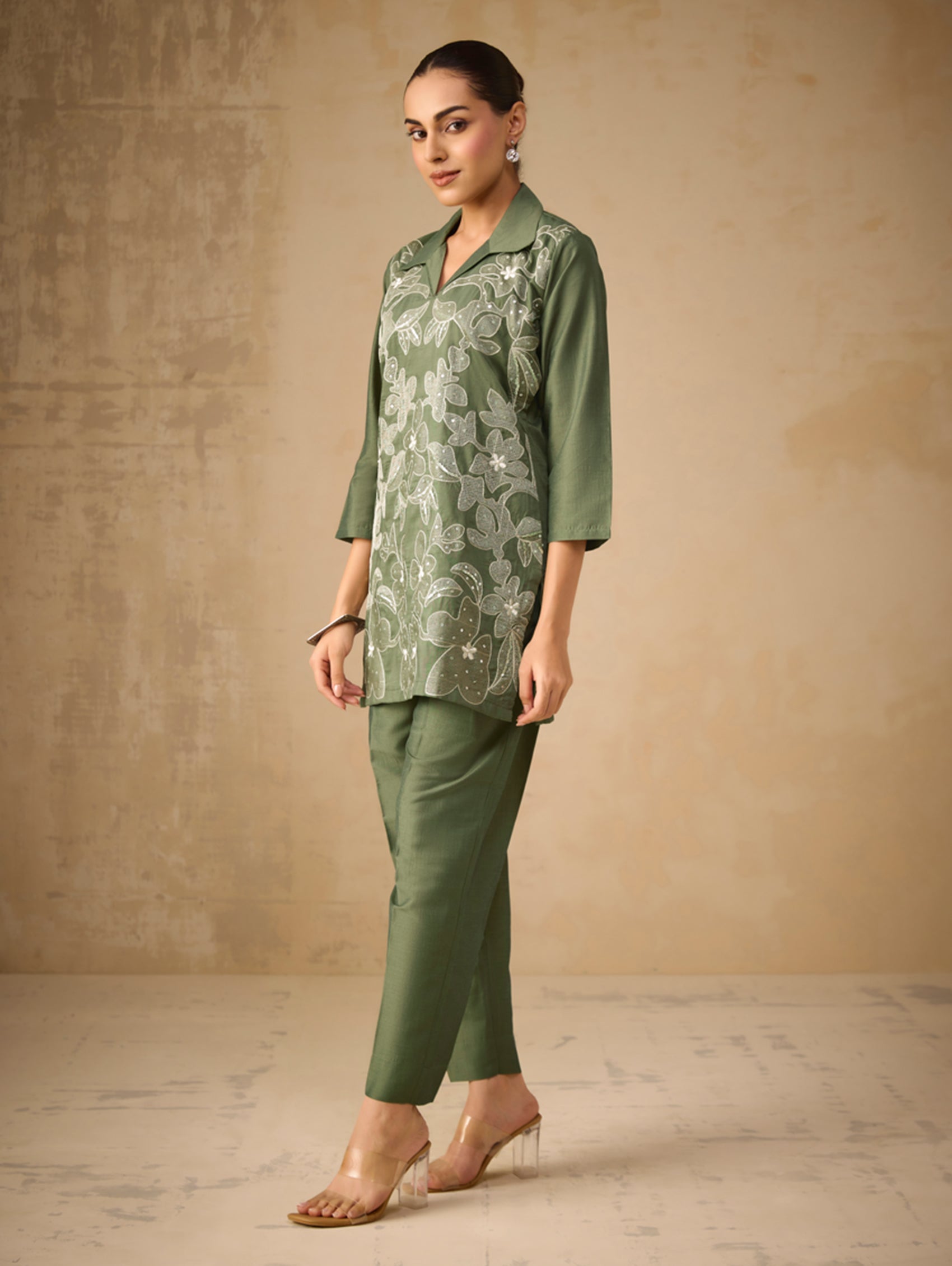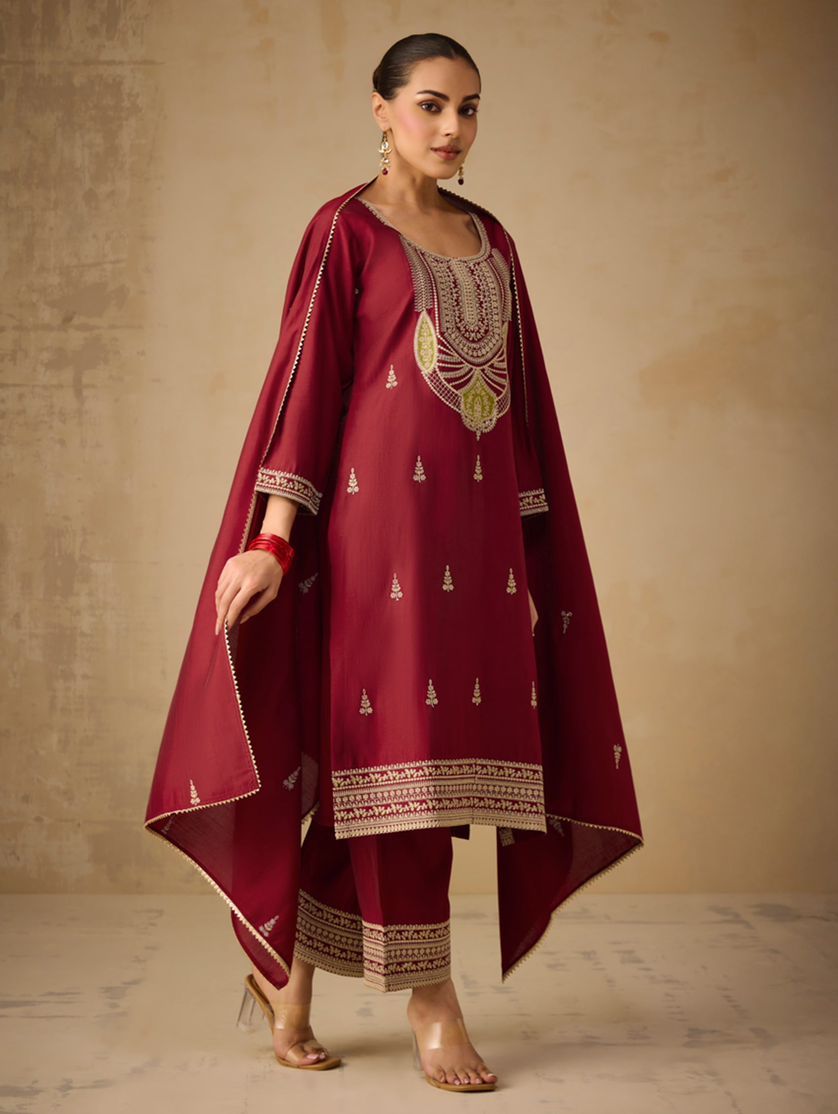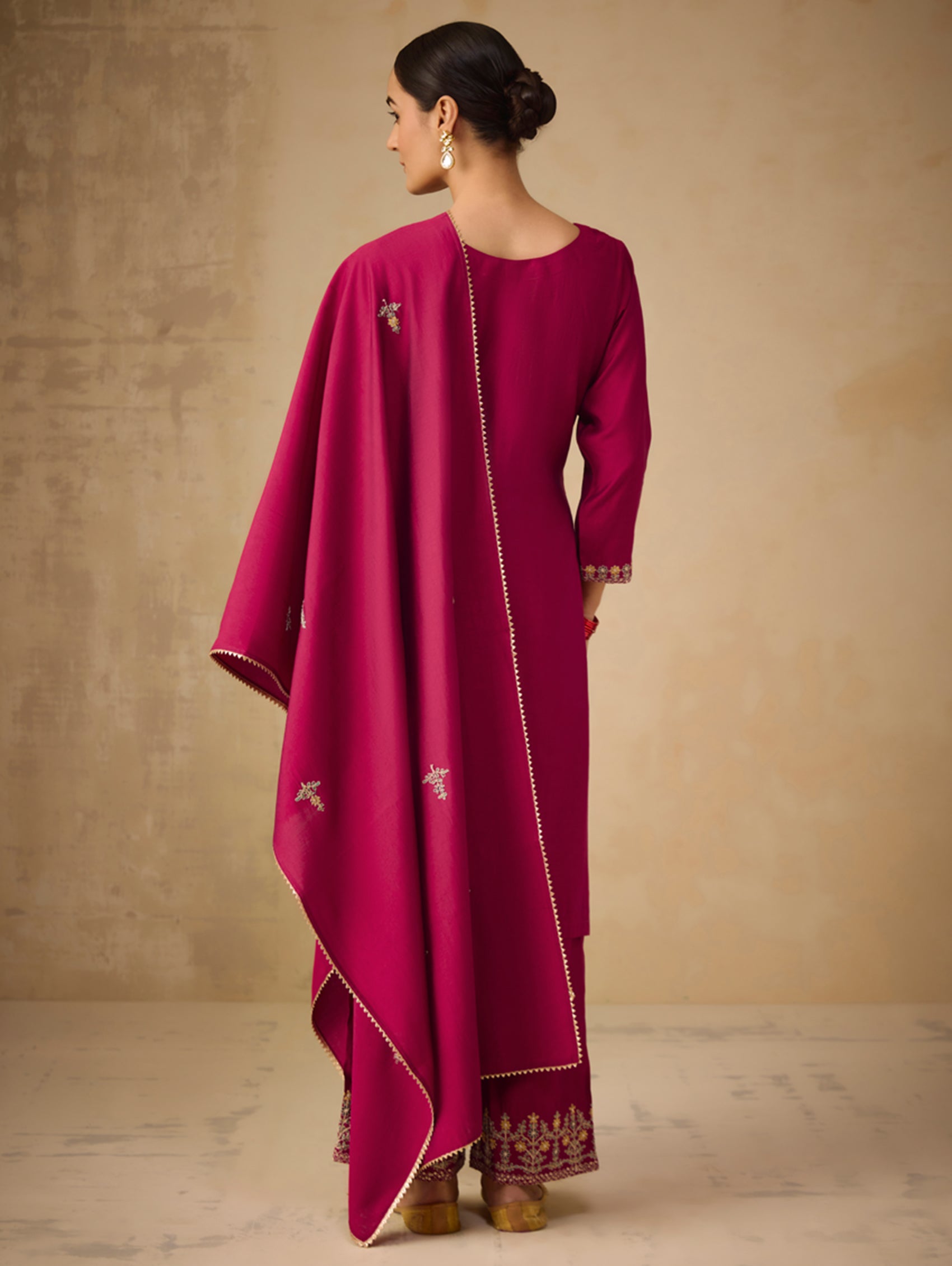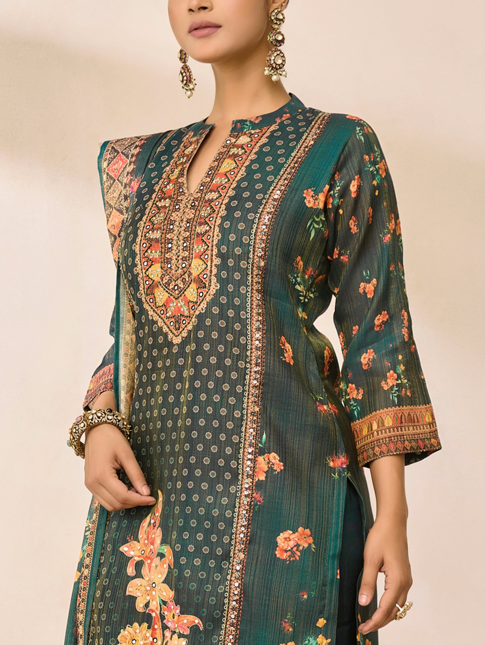 • Kurta with pants and digitally printed jacquard weave silk dupatta
