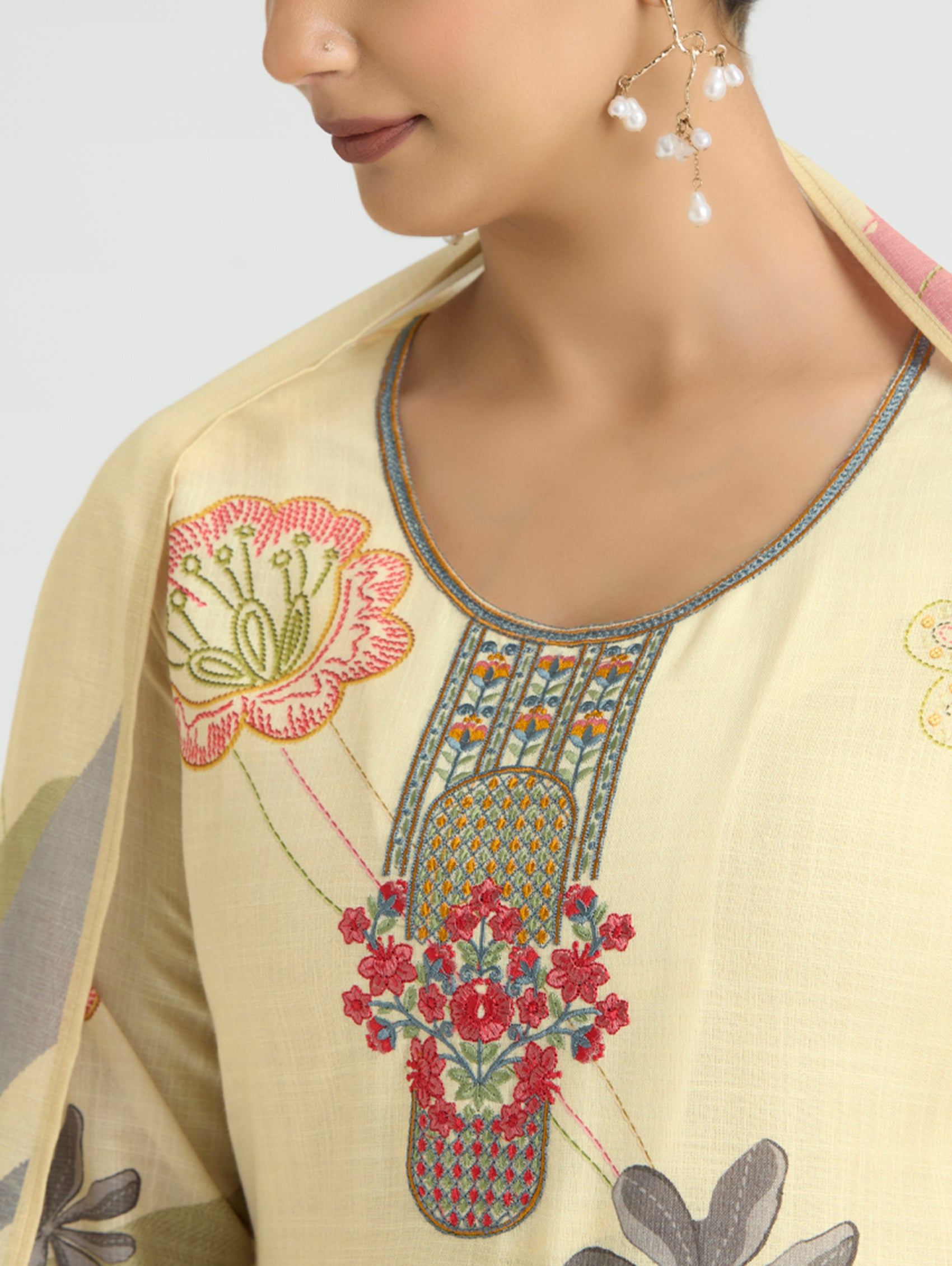 Elevate your ethnic wardrobe with this stunning digitally printed cotton linen suit set with dupatta. The intricately designed kurta showcases sophisticated computerised thread embroidery that catches every eye, while the coordinating pants offer comfortable everyday wear. Complete the look with the matching digitally printed dupatta that ties the entire set together seamlessly. Perfect for everyday wear, gatherings, or whenever you want to radiate confidence and grace, this versatile collection lets you express your personal style with effortless elegance and timeless appeal.