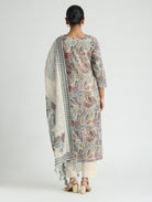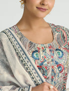 Pastel Grey Embroidered Pure Malai Cotton Suit Set with Dupatta