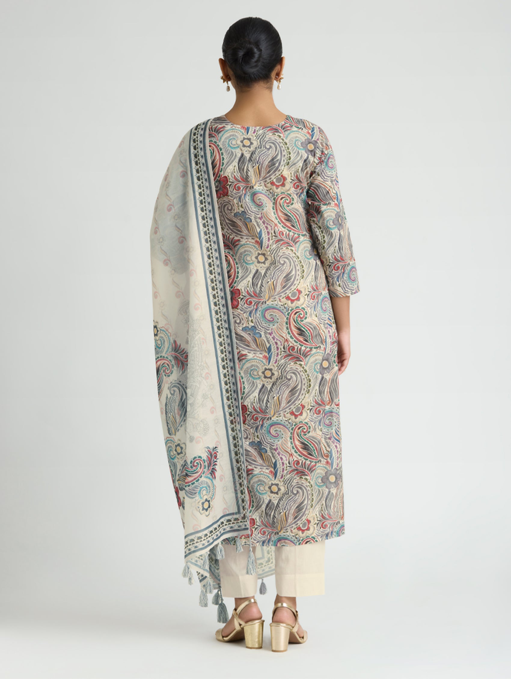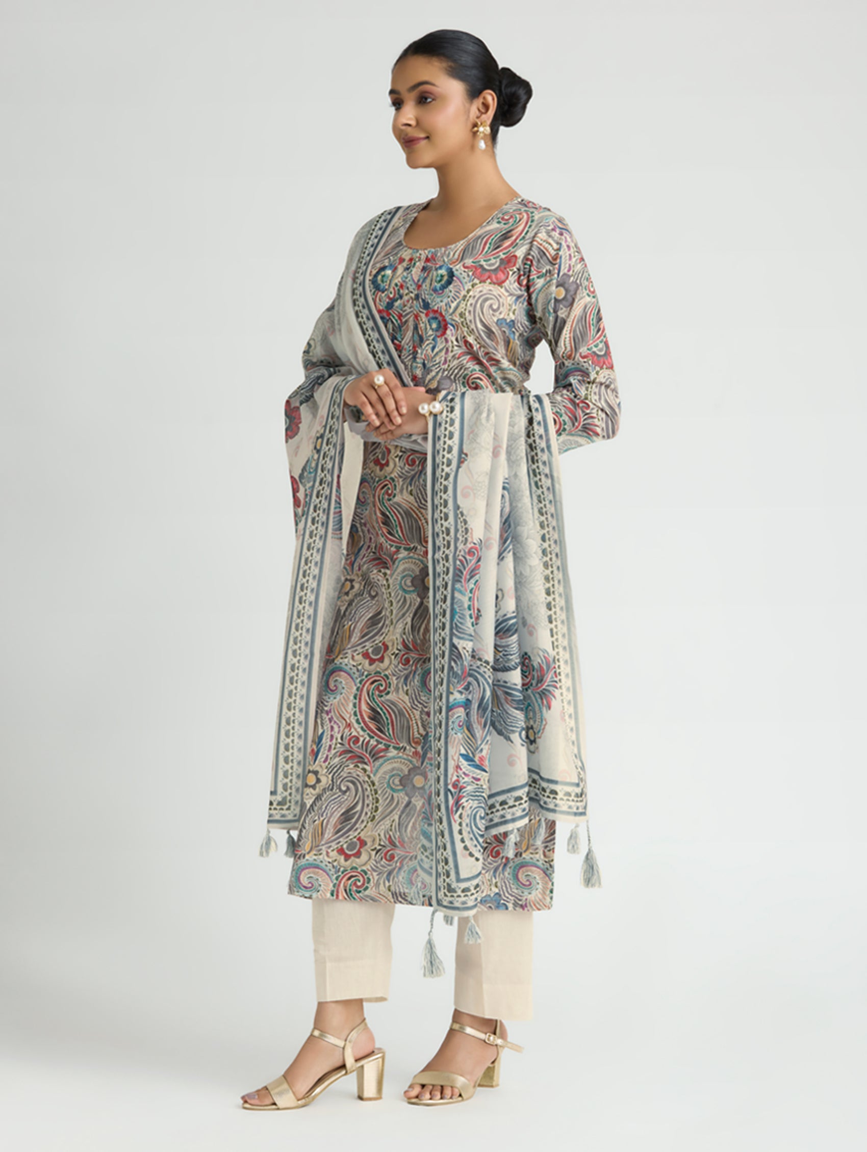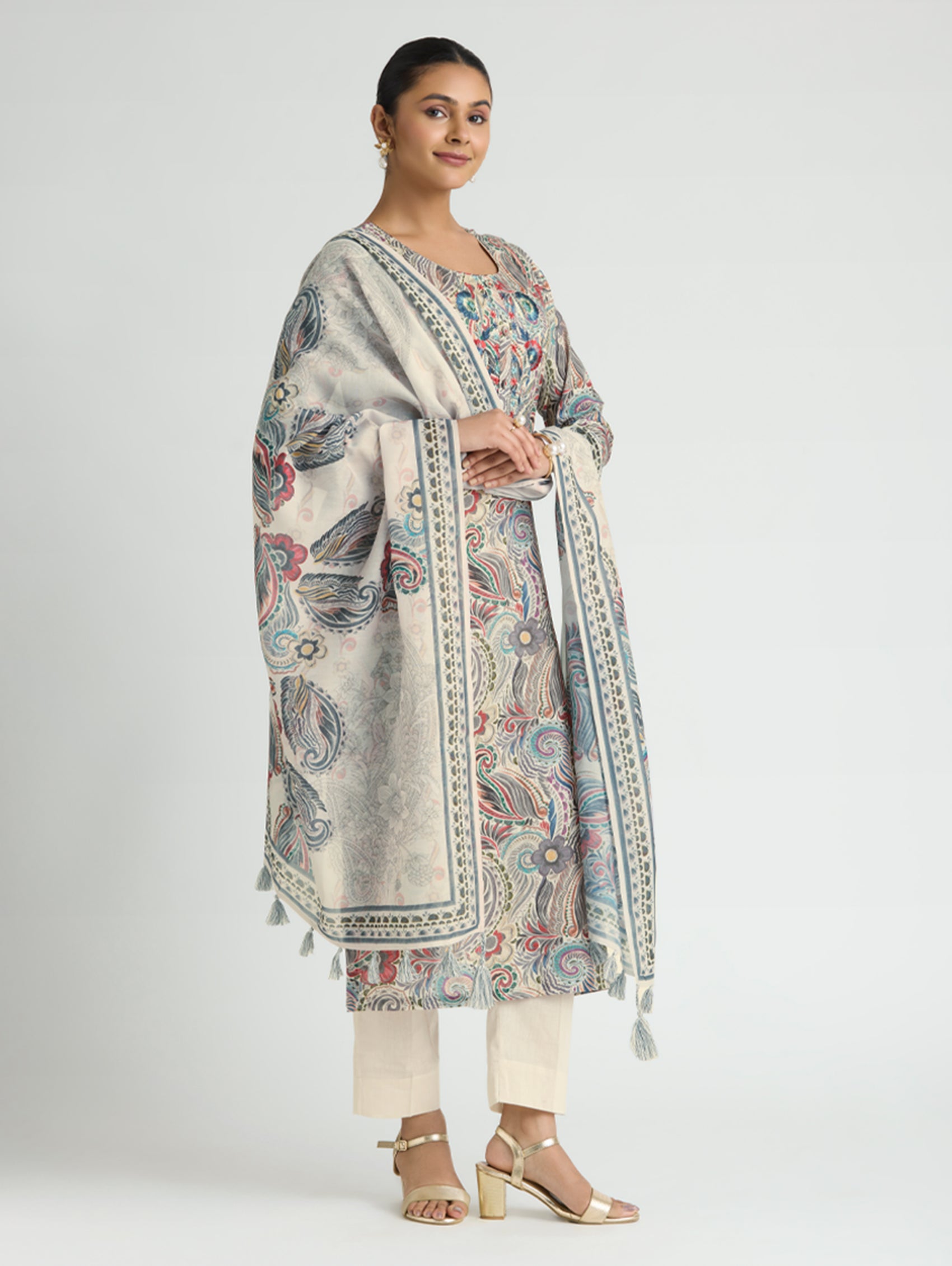 • Kurta with pants and digitally printed cotton mul dupatta
