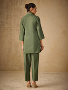 Experience the ideal combination of elegance and ease with our embroidered viscose silk co-ord set. This ensemble showcases a kurti adorned with intricate computerized thread and hand embroidery, complemented by a stylish revere collar and three-quarter sleeves. The coordinating pants feature a partially elasticated waistband and roomy pockets, blending practicality with chic design. Elevate your wardrobe with this adaptable set, crafted to ensure you stay comfortable and graceful all day long.