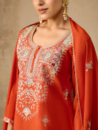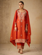 Discover sophistication in this straight-fit suit made from luxurious viscose silk. The kurta features detailed cording thread embroidery, complemented by matching straight palazzo pants and an embroidered viscose silk dupatta. This outfit seamlessly blends classic craftsmanship with contemporary design, giving you a refined and effortlessly chic look.