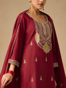 • Kurta with palazzos and embroidered viscose silk dupatta