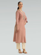 Oriental Pink Embroidered Viscose Rayon Kurta