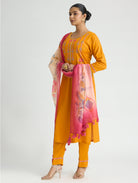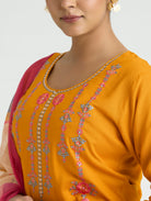 Carrot Orange Embroidered Viscose Rayon Suit Set with Dupatta