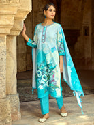 Elevate your style with this essential set! Unleash your inner trendsetter with this digitally printed cotton suit set, radiating sophistication and luxury. Featuring a flawlessly designed kurta embellished with computerized thread embroidery, sleek pants, and a coordinating dupatta. Experience the spellbinding and motivating worth of this set!
