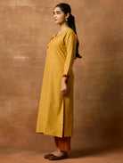 • Round Neckline kurta with three fourth sleeves and side slits open
