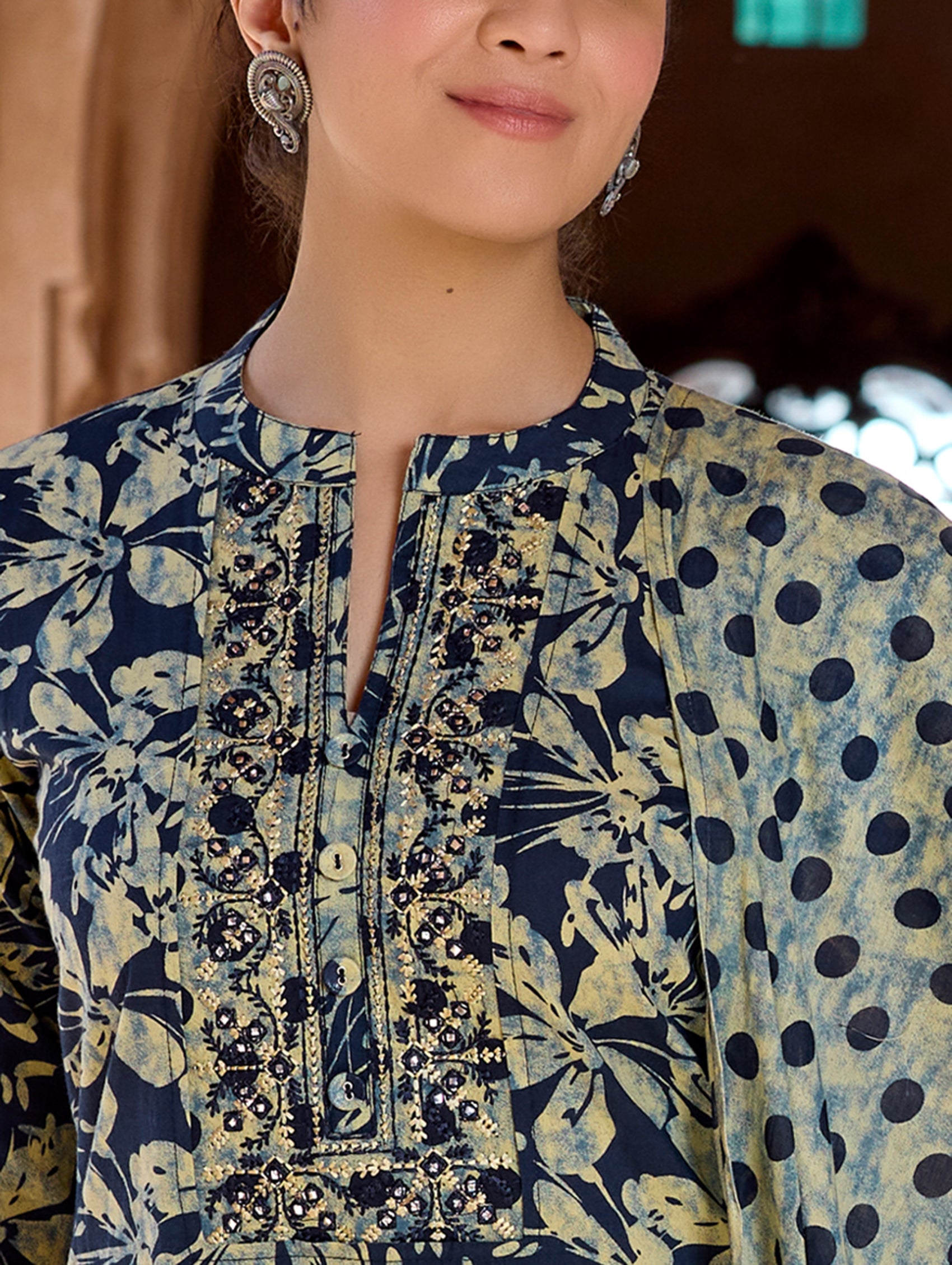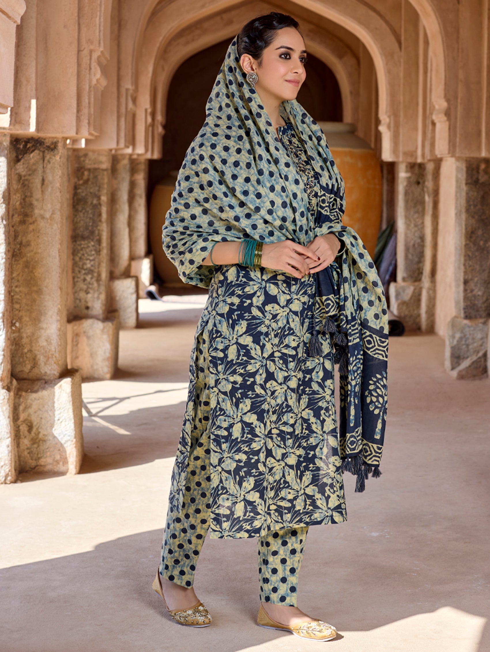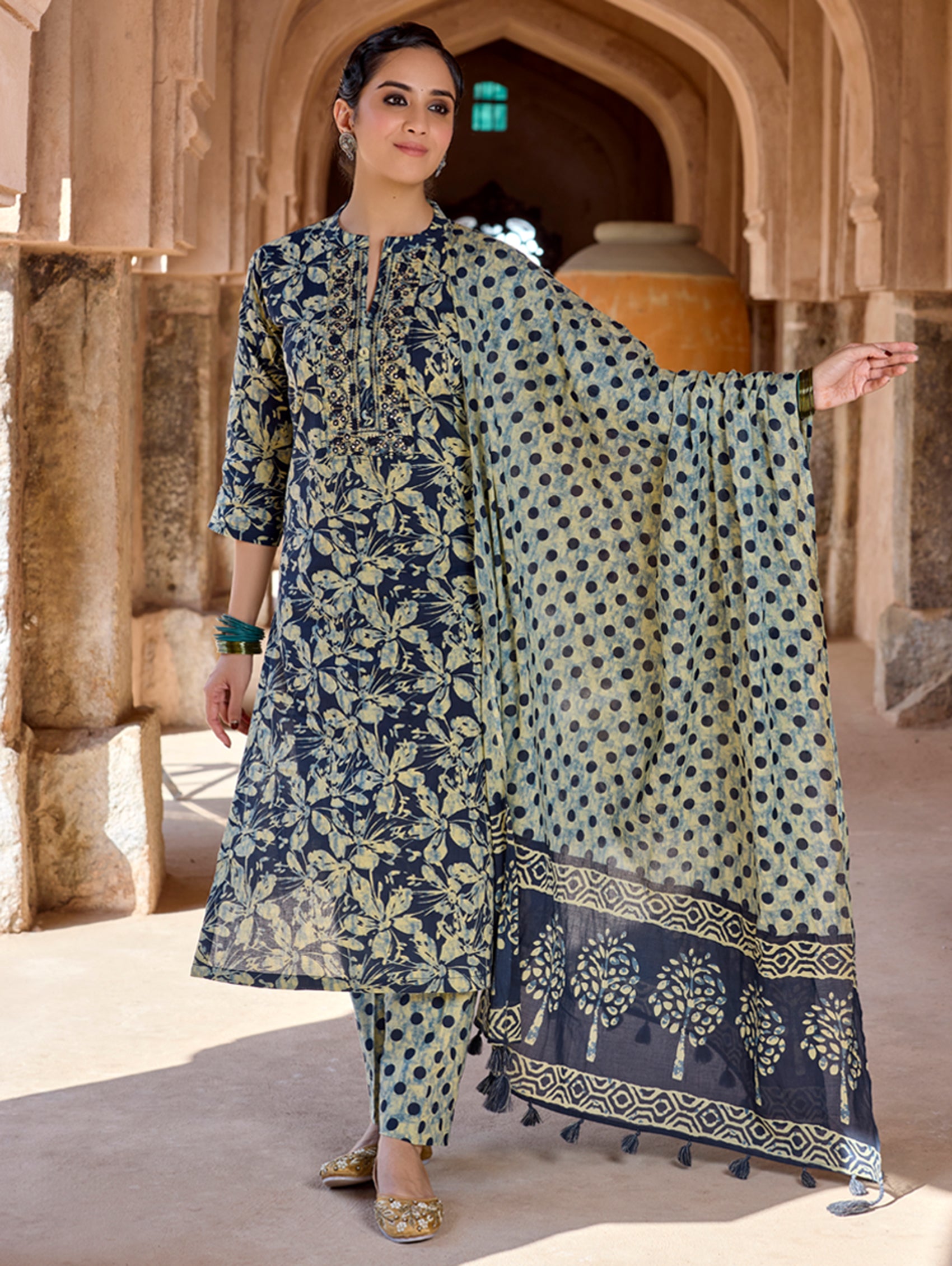 Experience the ultimate upgrade to your wardrobe with our latest addition - an exquisite straight-fit suit set. Complete with a computerized embroidered pure cotton kurta, sleek straight pants, and a printed cotton mul dupatta, this set is a must-have for every fashion lover. Elevate your collection with the touch of elegance and sophistication it deserves!