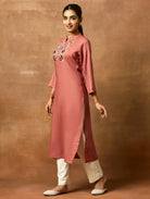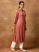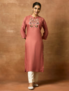 Experience effortless style with this Women Plus kurta! Featuring a ban collar, computerised thread embroidery, and three-fourth sleeves, it exudes elegance and charm. Crafted from premium rayon slub, it guarantees unbeatable comfort and breathability in warm weather.