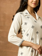 • Short Kurta with a revere collar and three-fourth sleeves.