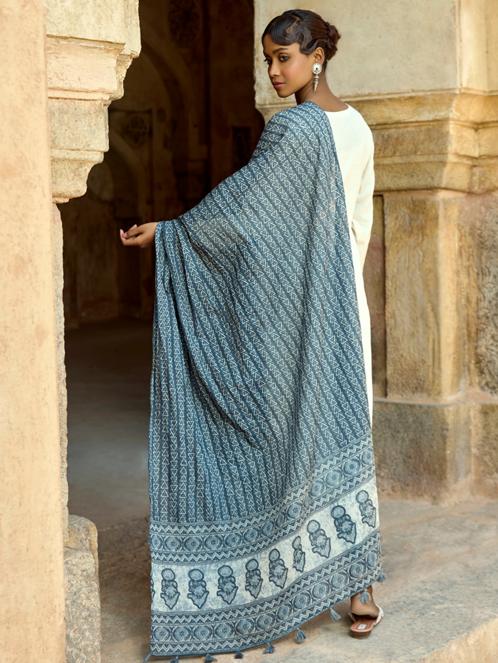 Elevate your wardrobe with our latest offering - the stunning straight-cut suit set. This set boasts of a computerized embroidery on the viscose flex kurta, teamed with straight pants and a printed pure cotton mul dupatta. A must-have for every fashion enthusiast, it adds a touch of refinement and grace to your collection!