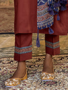 Embrace the best of both worlds - style and comfort - with our exquisite Embroidered Suit Set. It boasts of a fashionable kurta and well-fitted pants, both made of Liva-Certified Viscose Rayon fabric. The set is also accompanied by a stunning printed dupatta in pure cotton mul fabric, adding an elegant touch to the entire outfit. The kurta is adorned with intricate embroidery, adding a touch of sophistication and luxury.