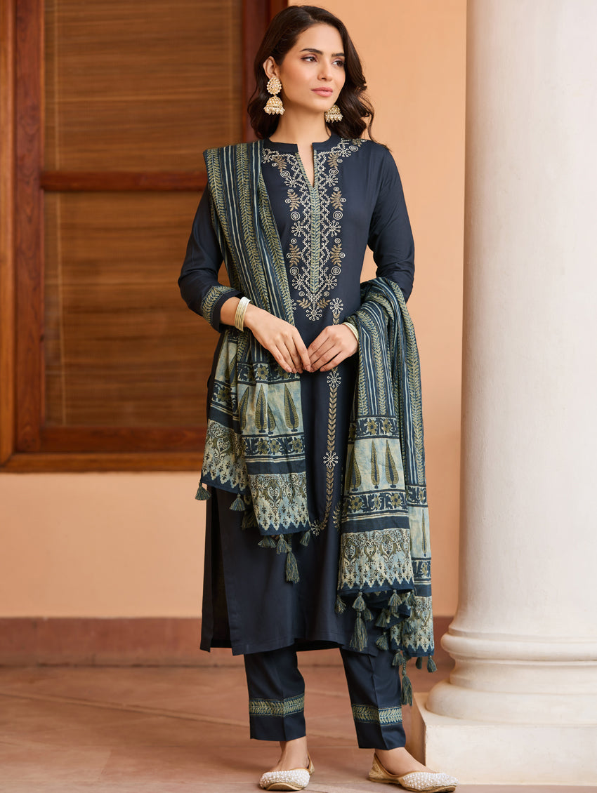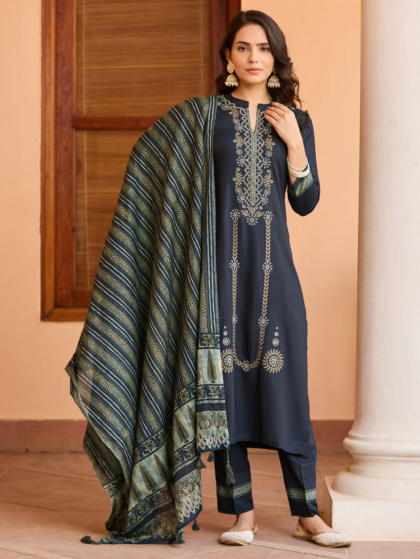 Embroidered Viscose Rayon Suit Set 4254