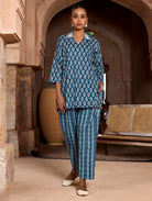 Stay stylish and comfortable all day long with our effortlessly chic printed cotton co-ord set! This set includes a cropped kurti with a beautifully embroidered revere collar, three-quarter sleeves, and regular solid-coloured pants with a partially elasticated waistband and spacious pockets. Experience the perfect combination of style and ease with this must-have co-ord set.