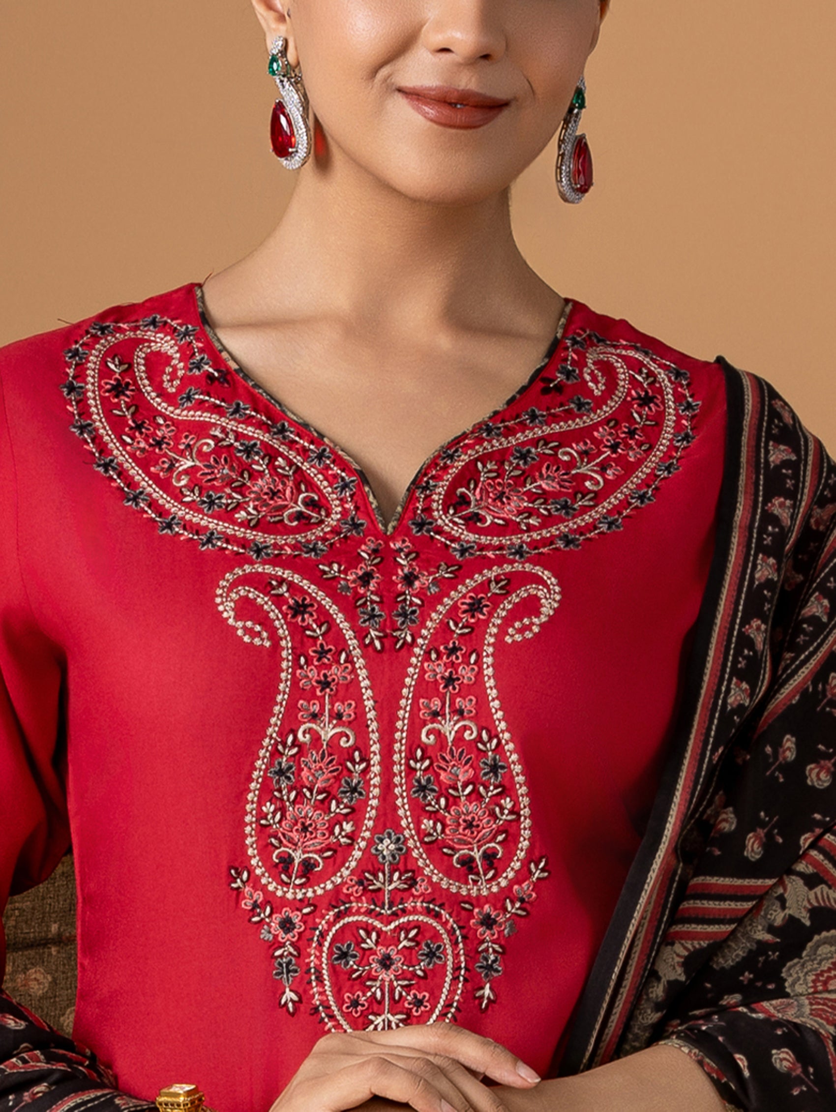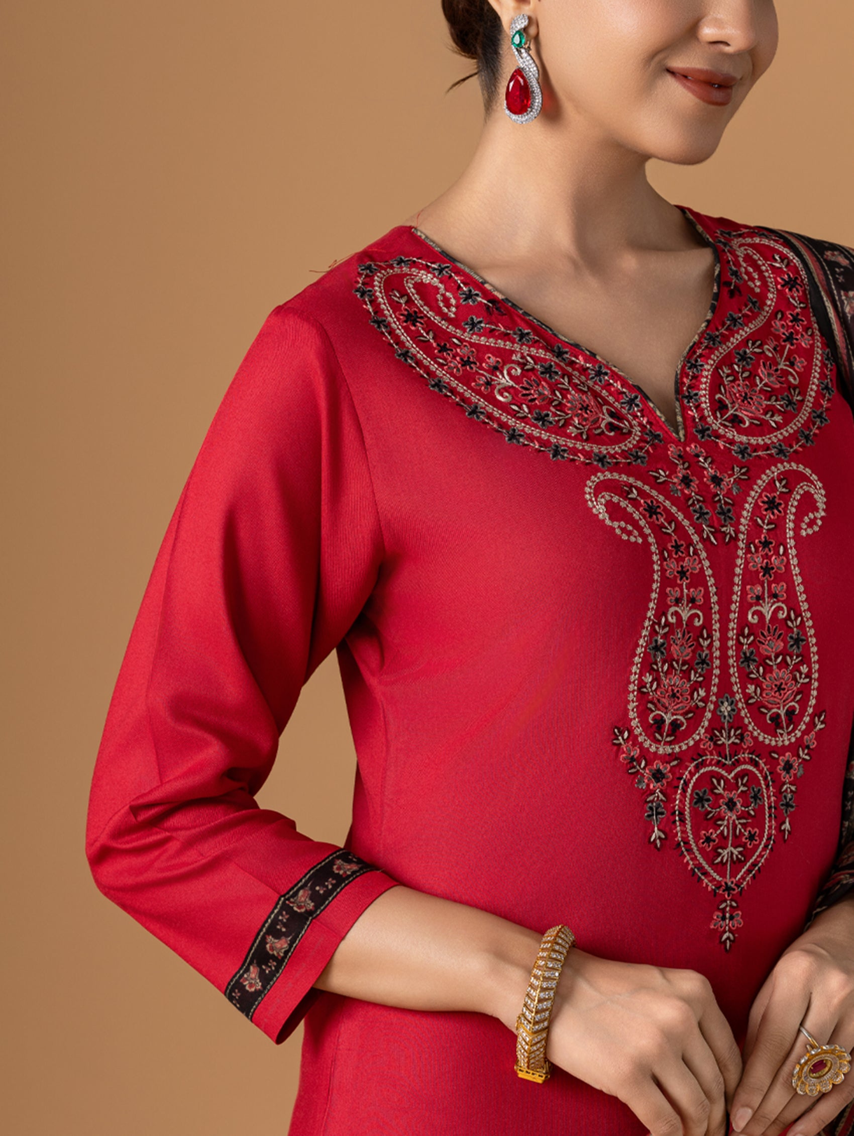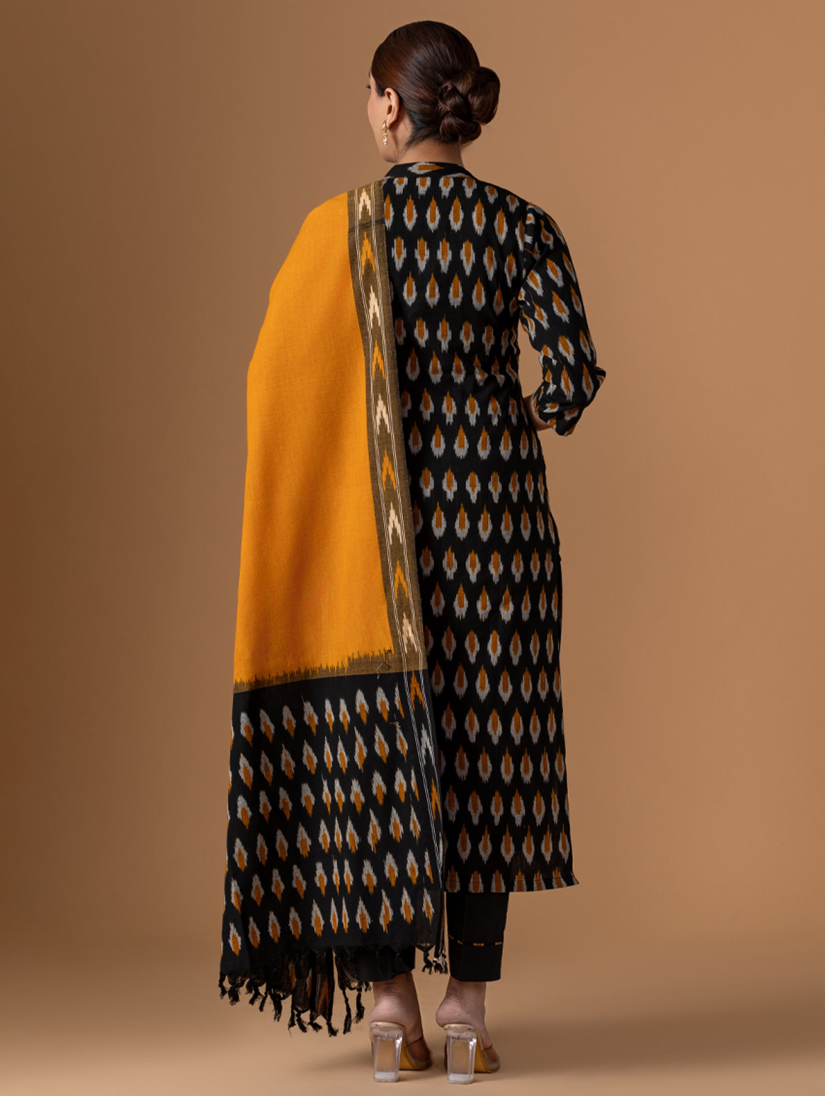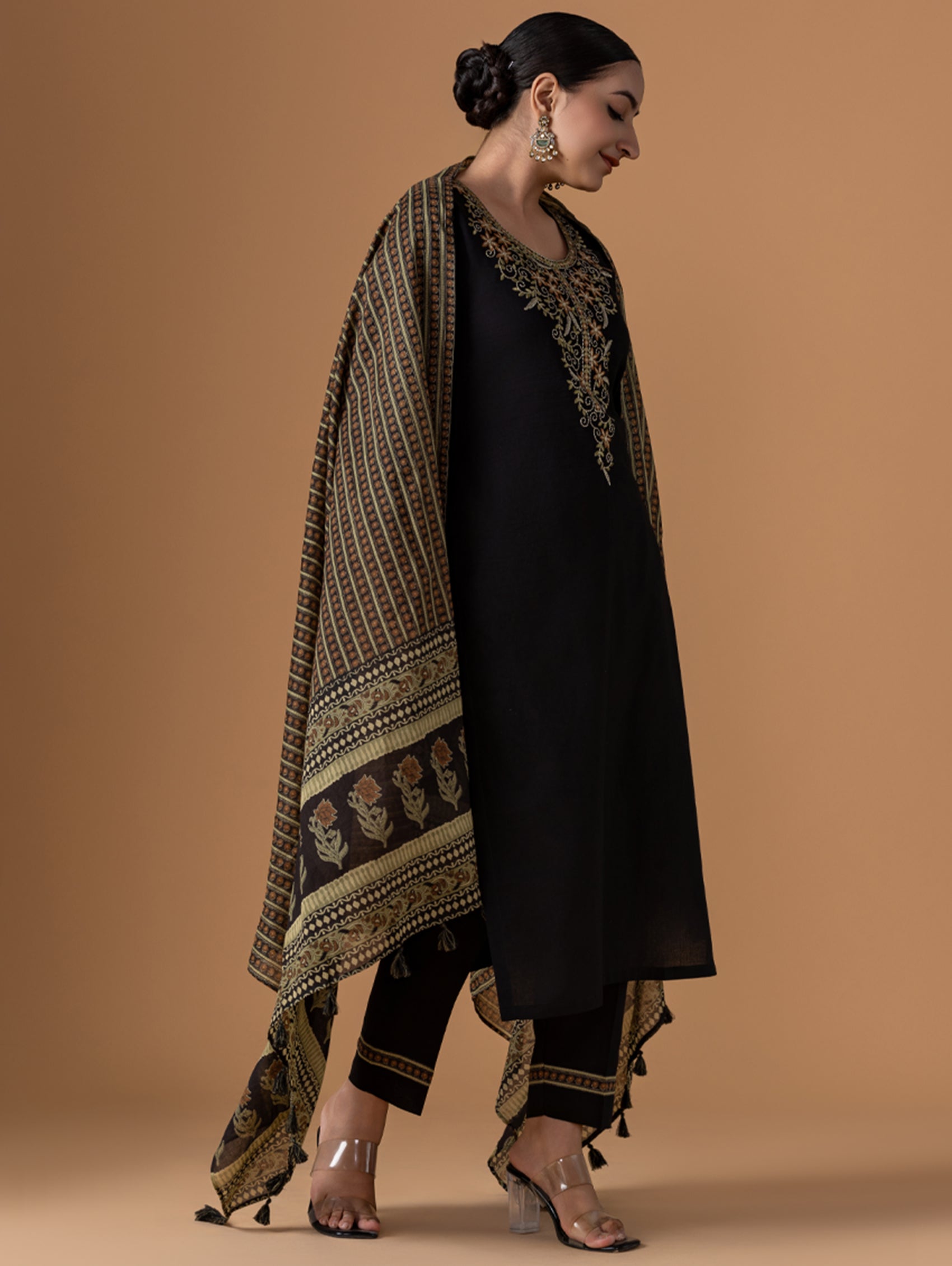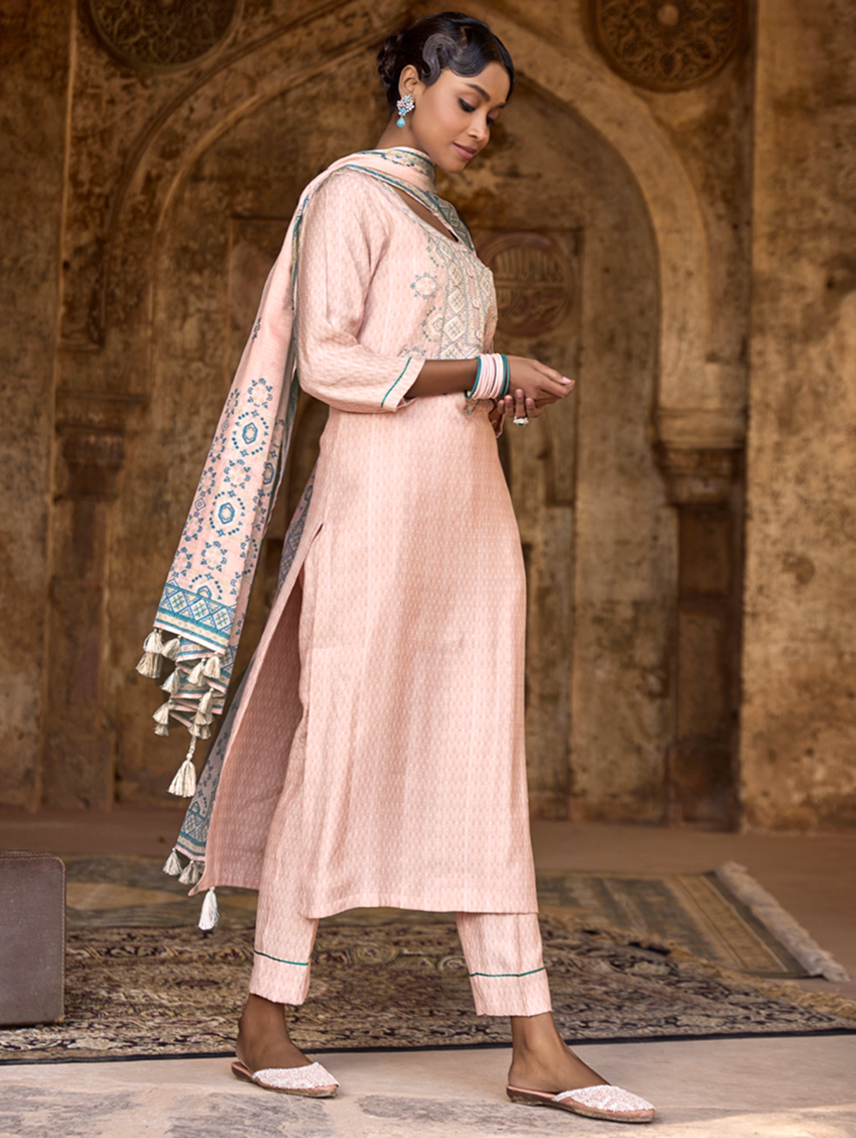 • Short Kurti with mandarin collar, three-fourth sleeves, and side slits open