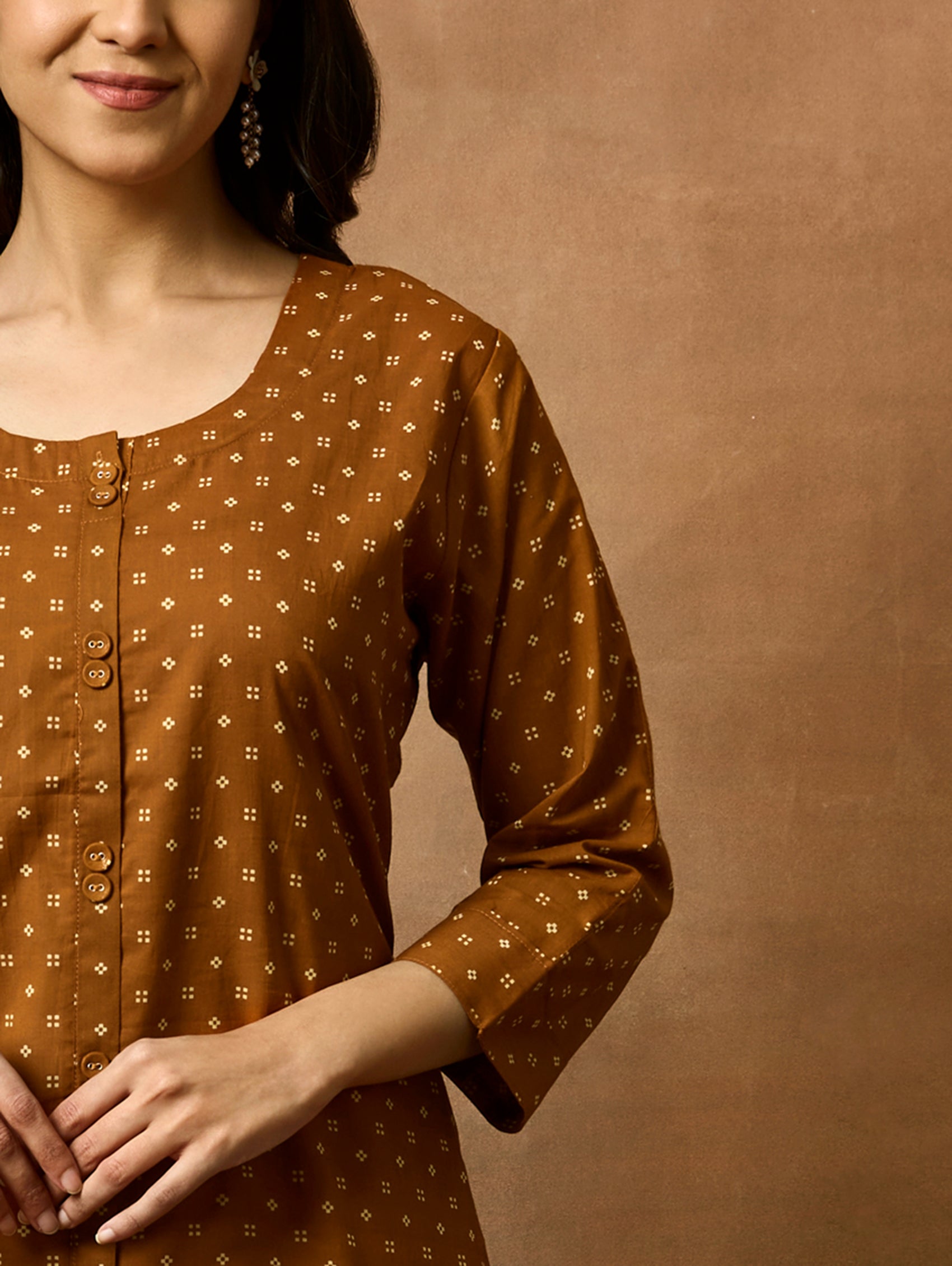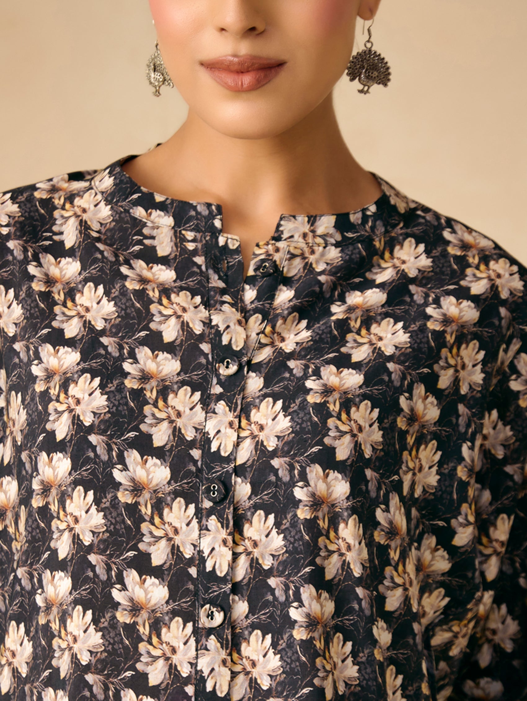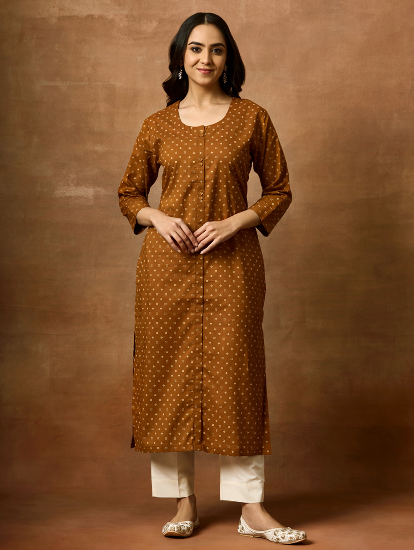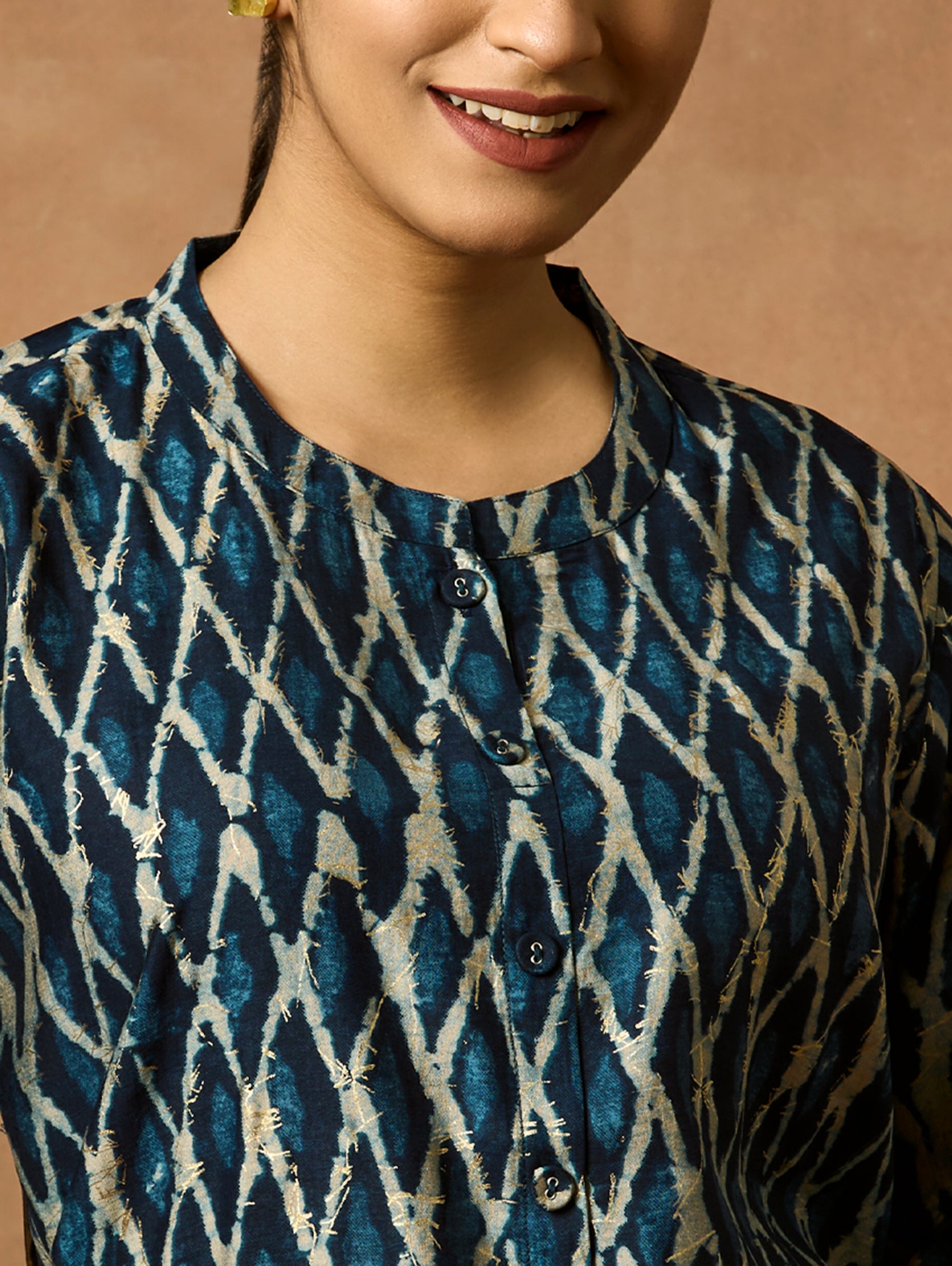 Discover our newest addition—a beautifully printed pure cotton short kurti featuring a mandarin collar, three-fourth sleeves, and stylish open side slits. This finely tailored kurta exudes sophistication and charm. Elevate your wardrobe with this must-have piece!