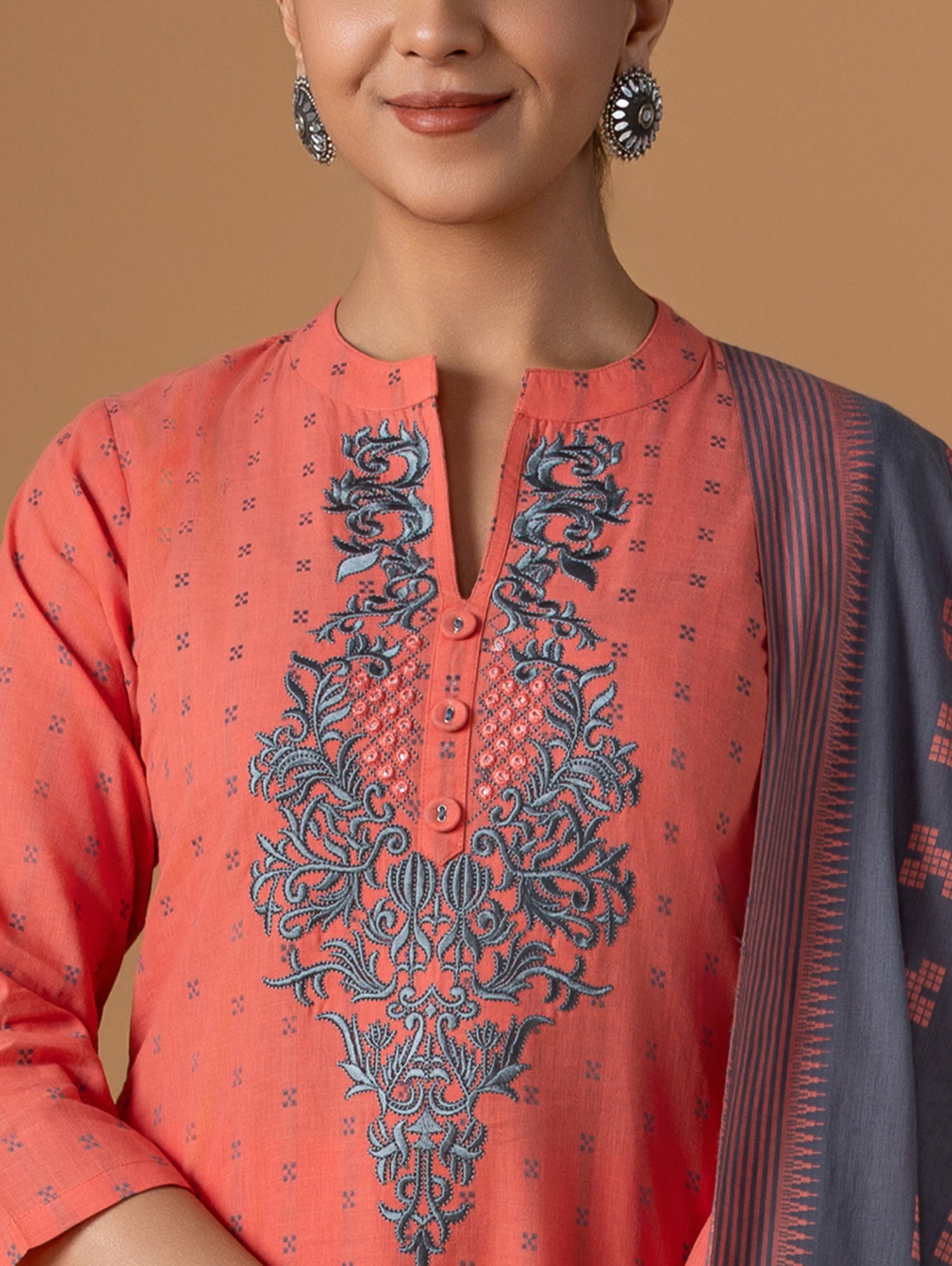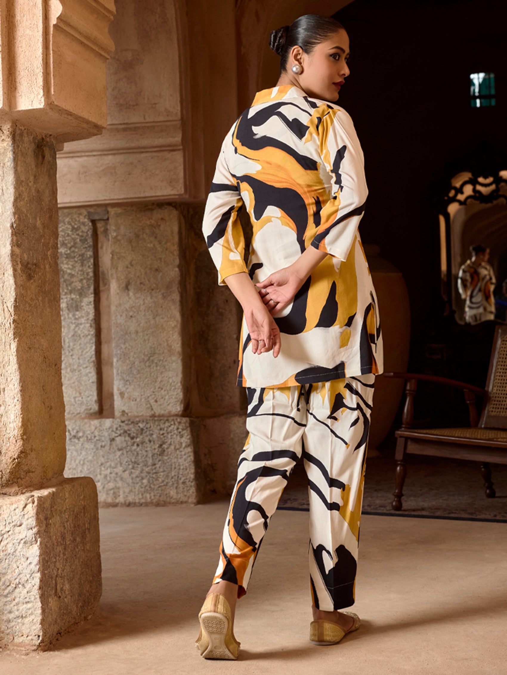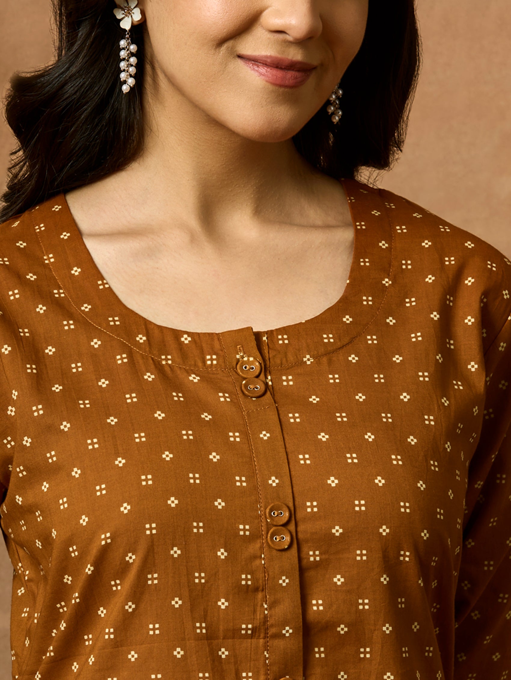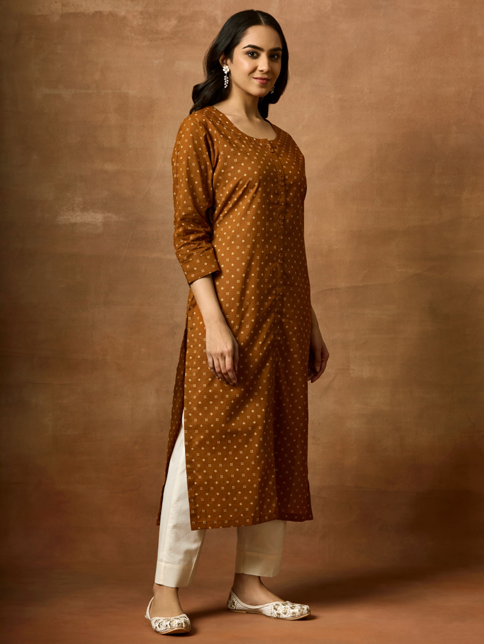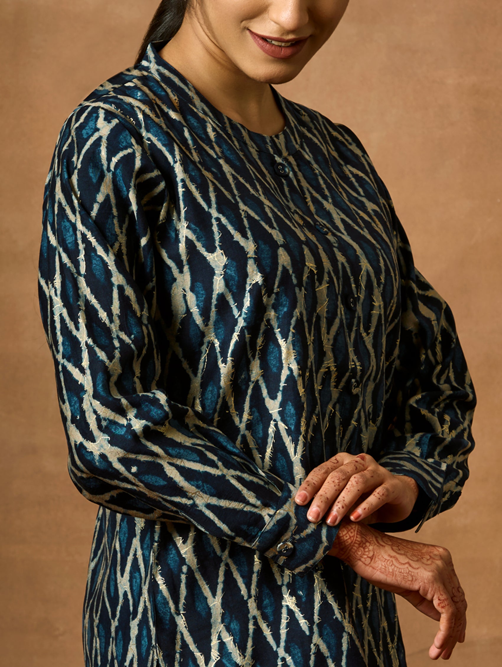 Discover our newest addition—a beautifully printed pure cotton short kurti featuring a mandarin collar, three-fourth sleeves, and stylish open side slits. This finely tailored kurta exudes sophistication and charm. Elevate your wardrobe with this must-have piece!