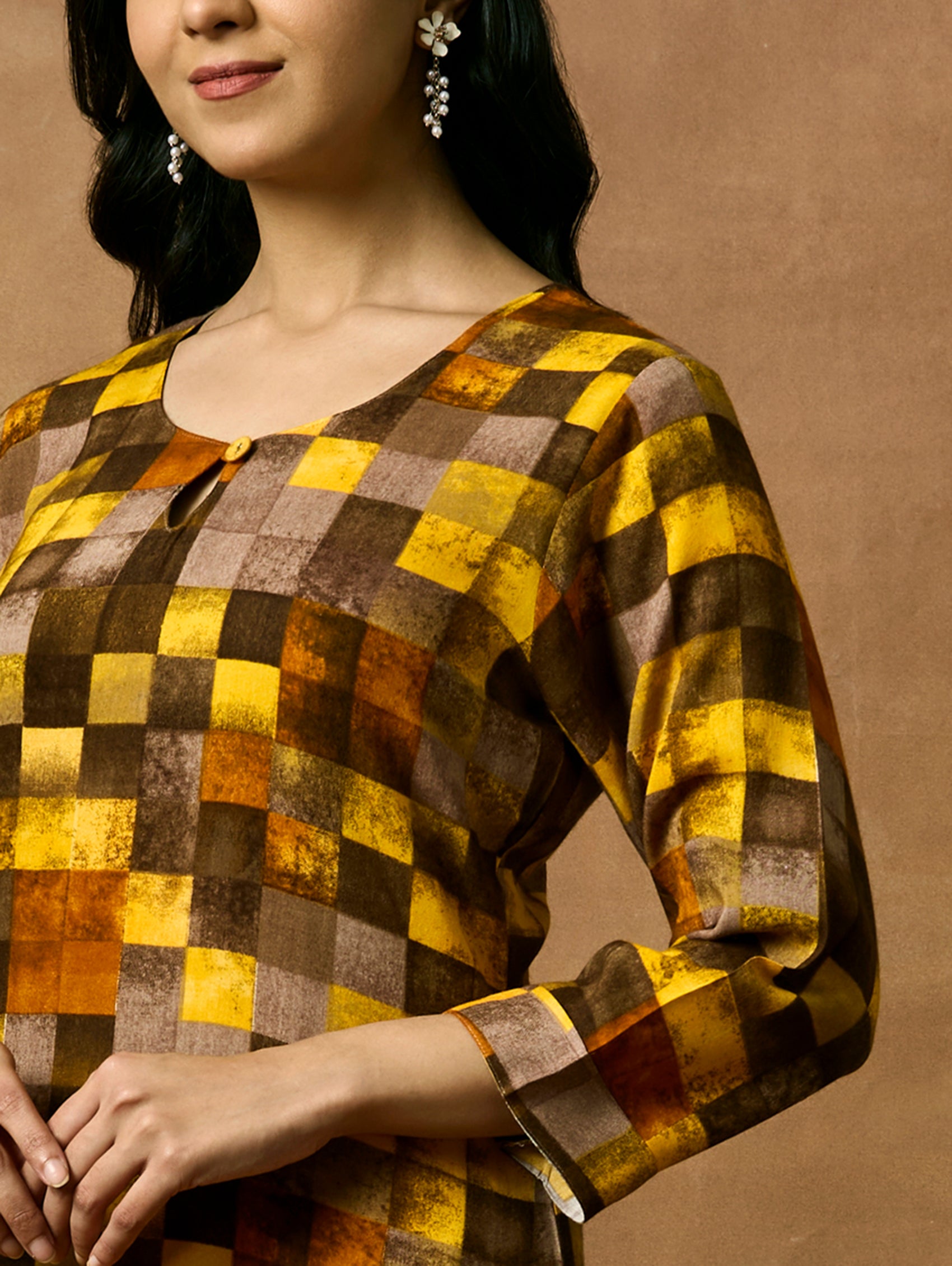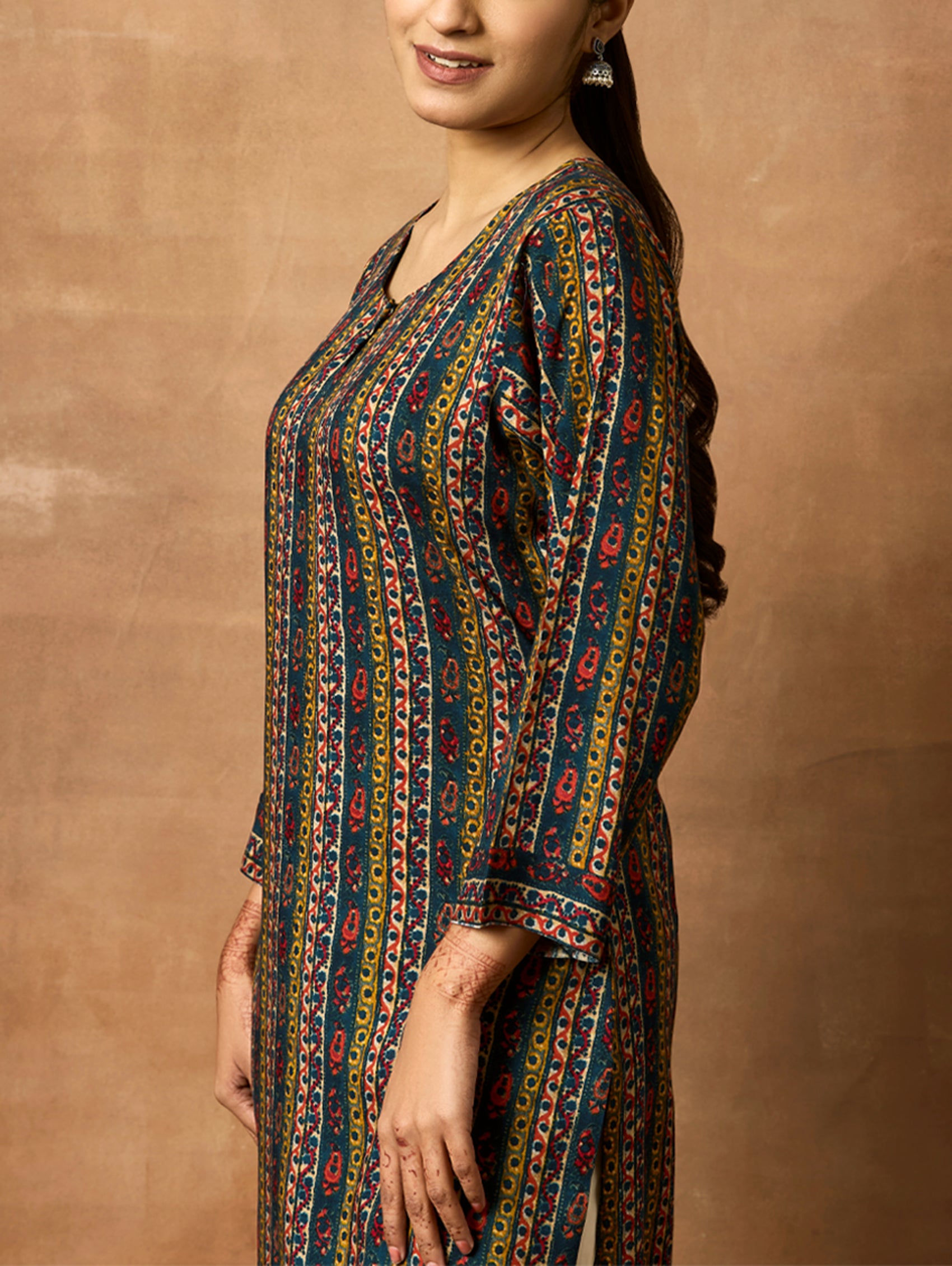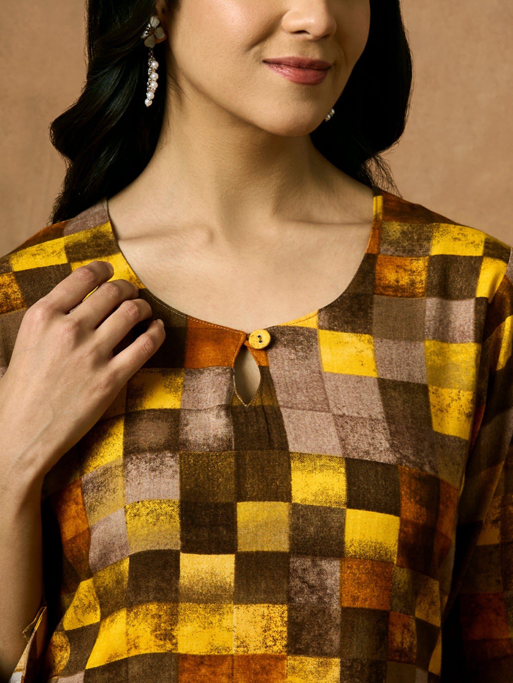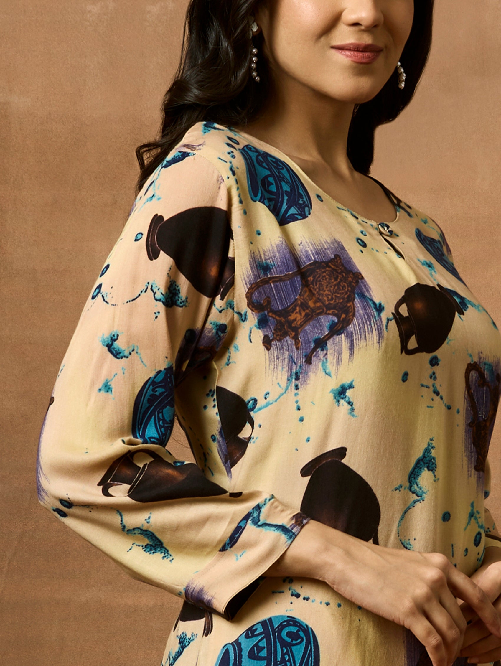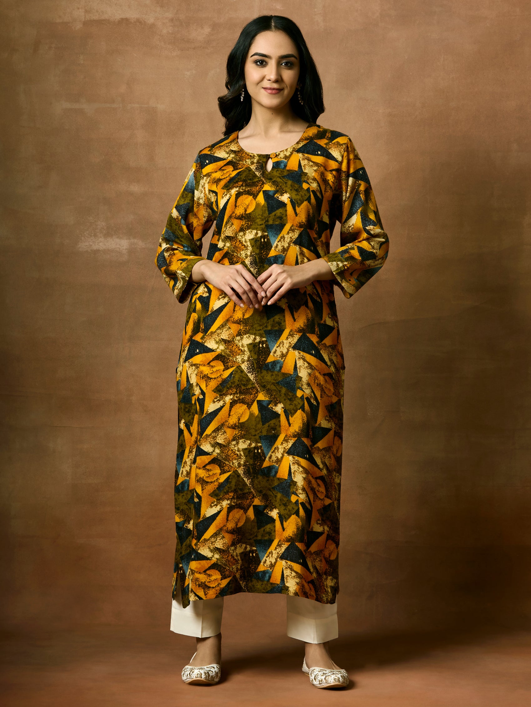 Experience the effortless elegance of this Women Plus kurta. Adorned with a keyhole round neckline and three-fourth sleeves, this kurta is crafted from printed rayon to keep you comfortable and stylish in the scorching summer heat.