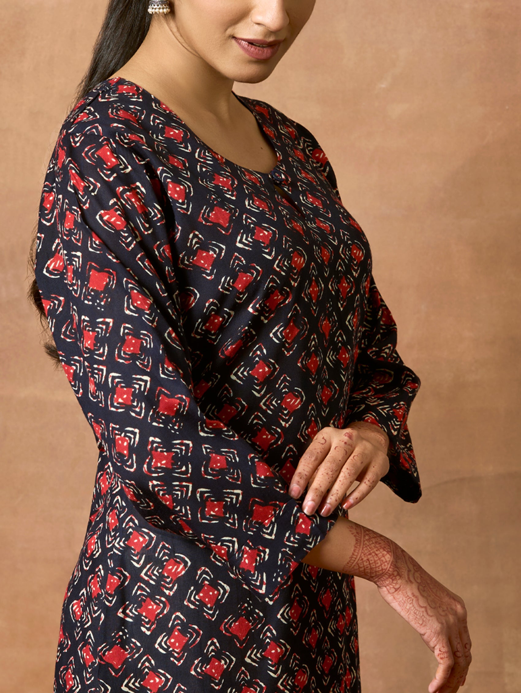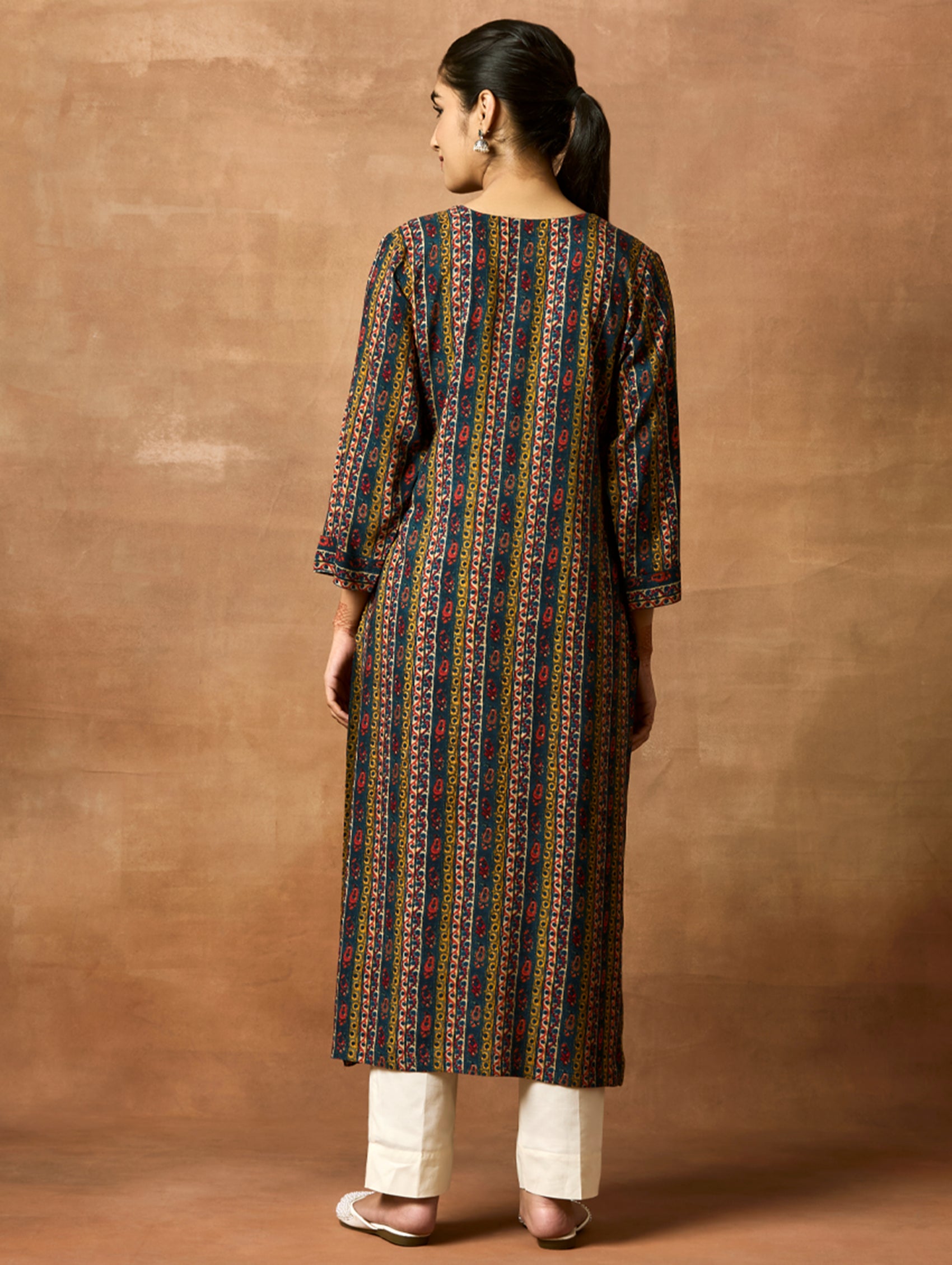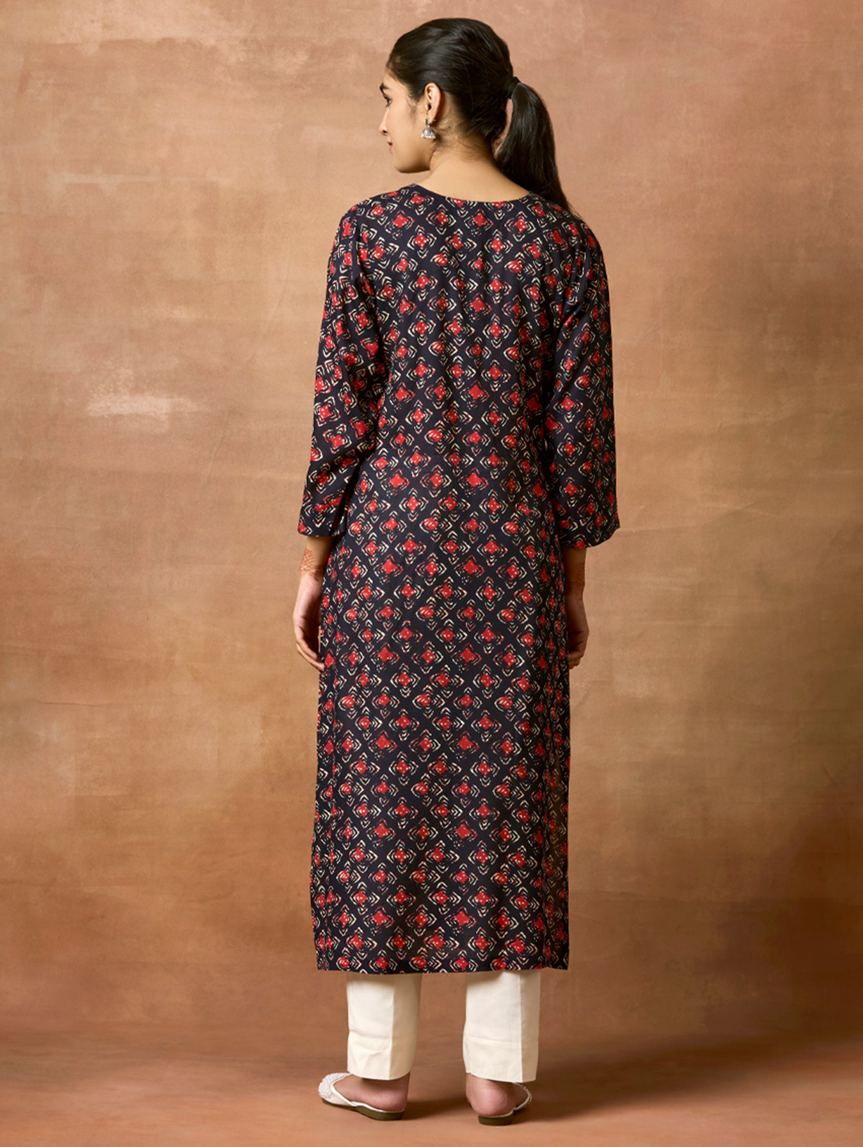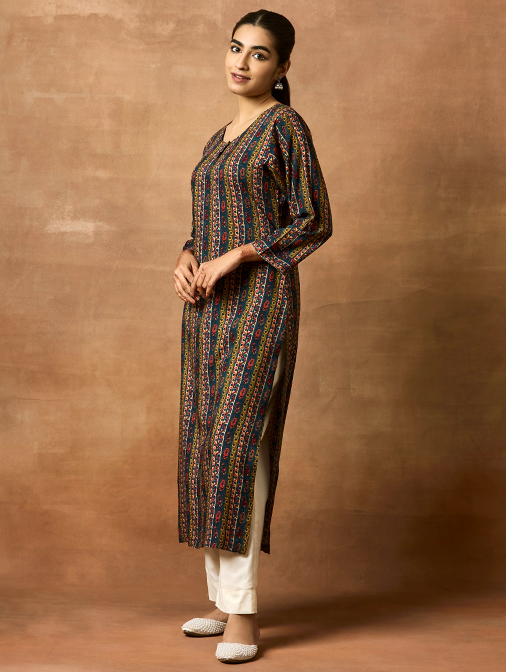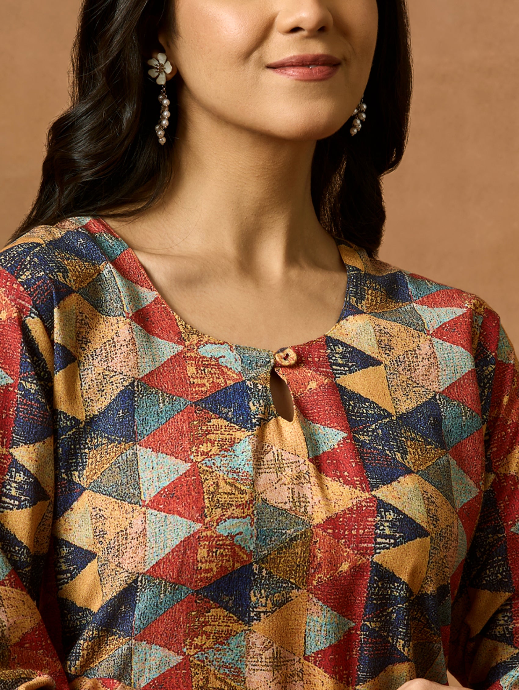 Experience the effortless elegance of this Women Plus kurta. Adorned with a keyhole round neckline and three-fourth sleeves, this kurta is crafted from printed rayon to keep you comfortable and stylish in the scorching summer heat.