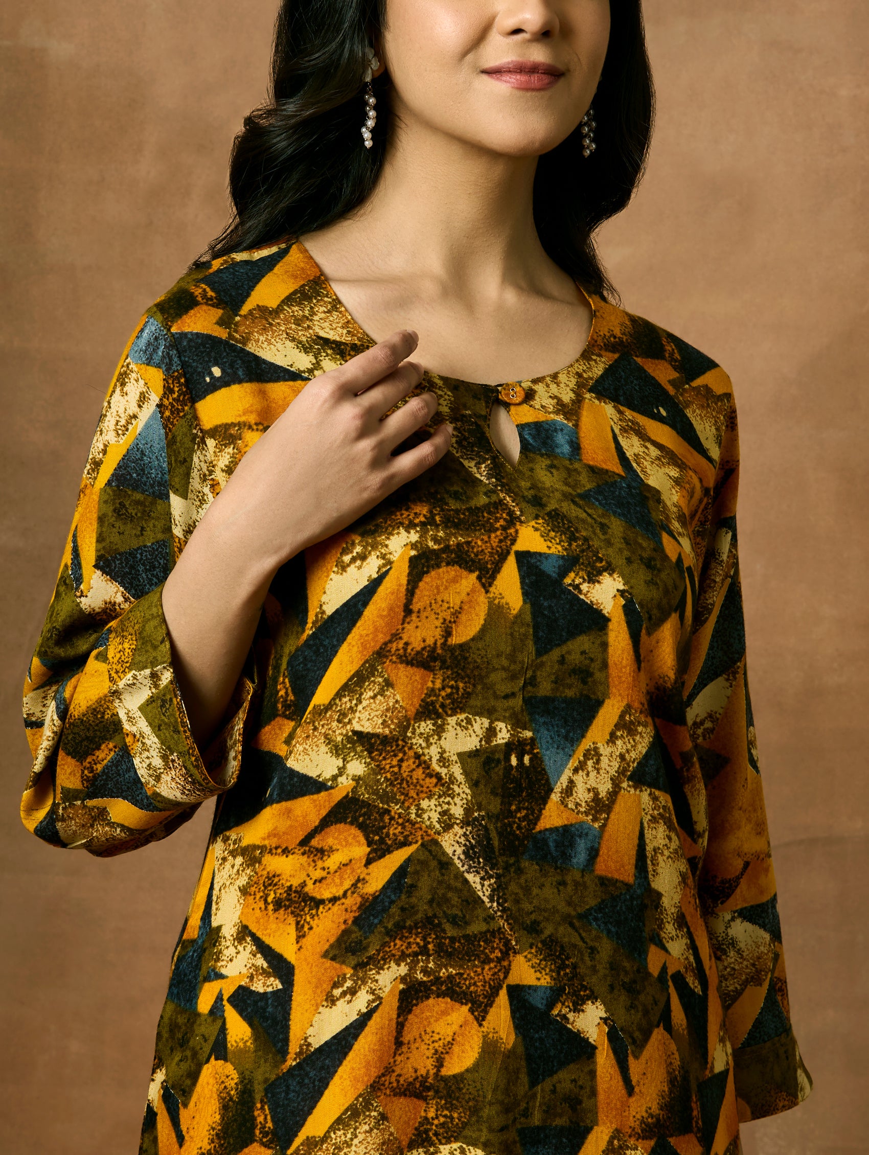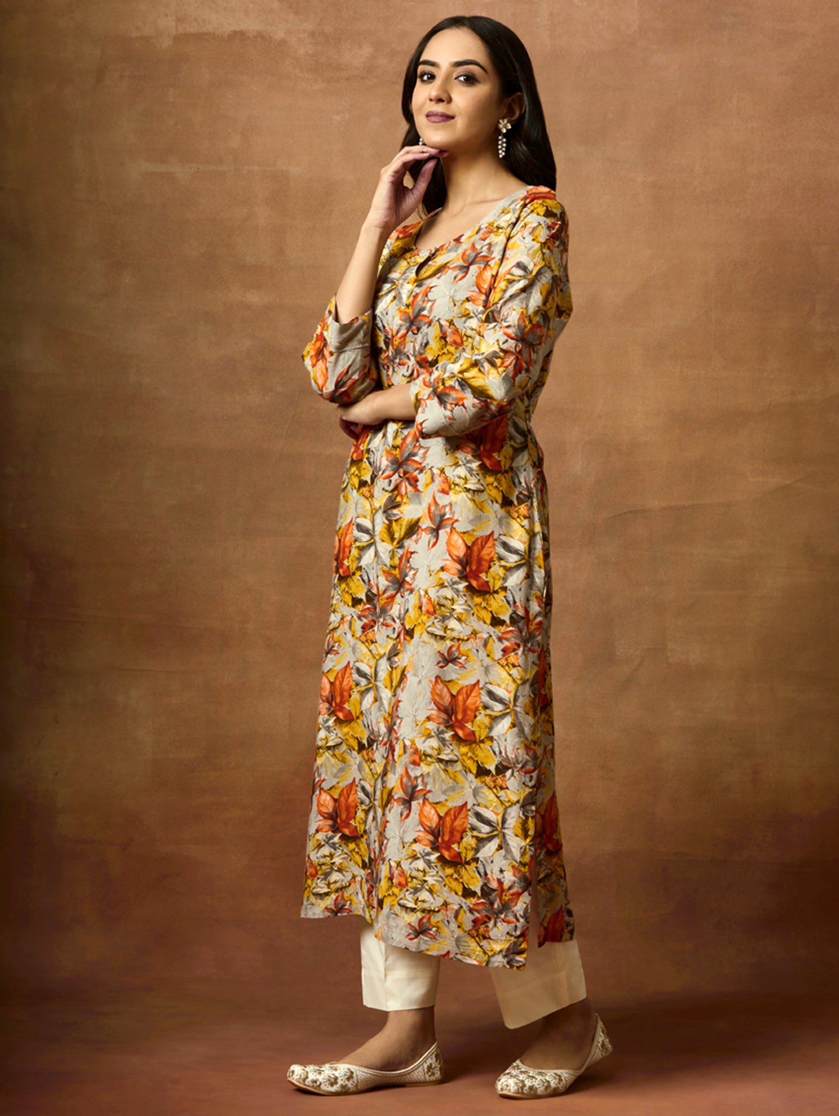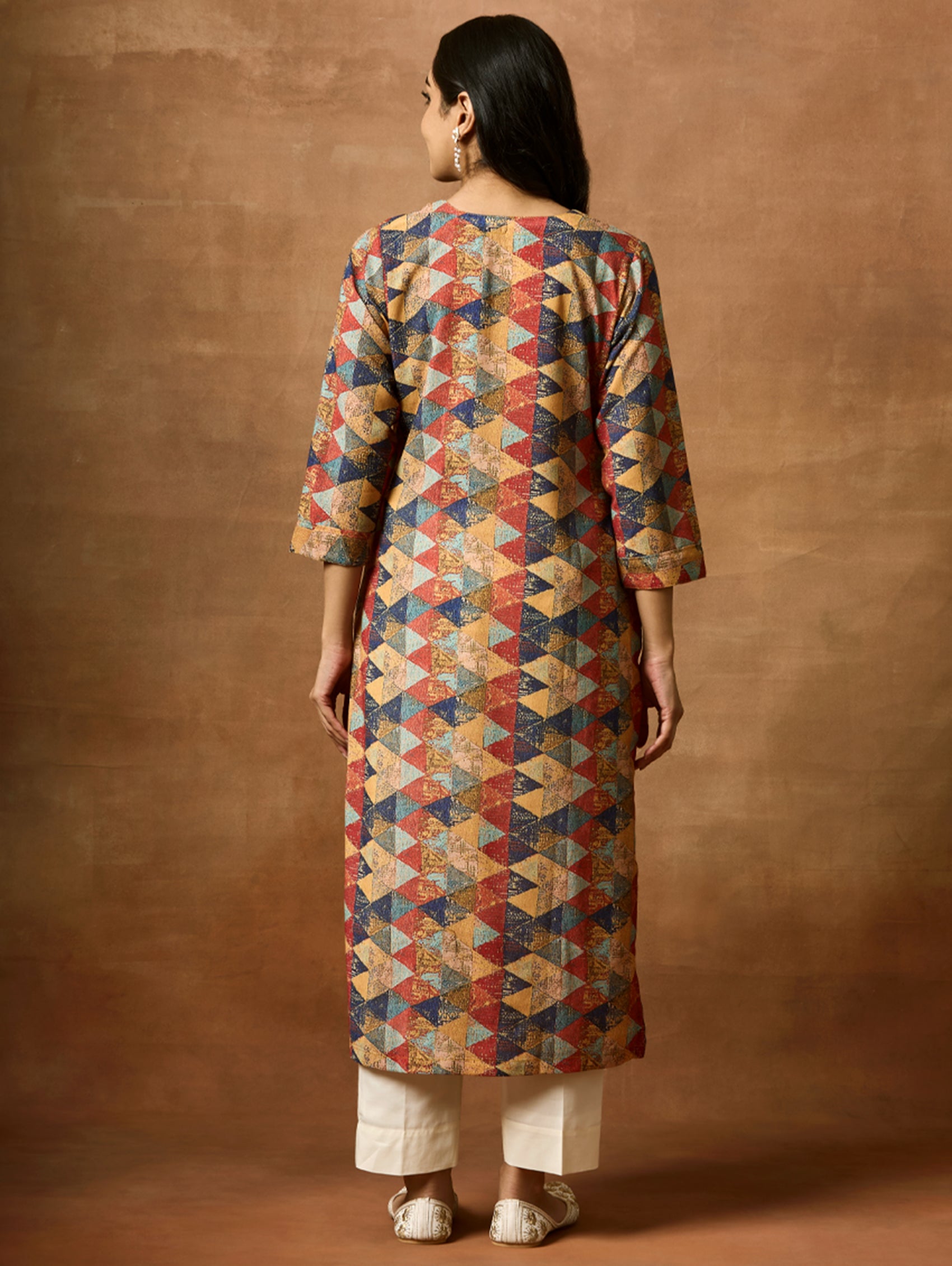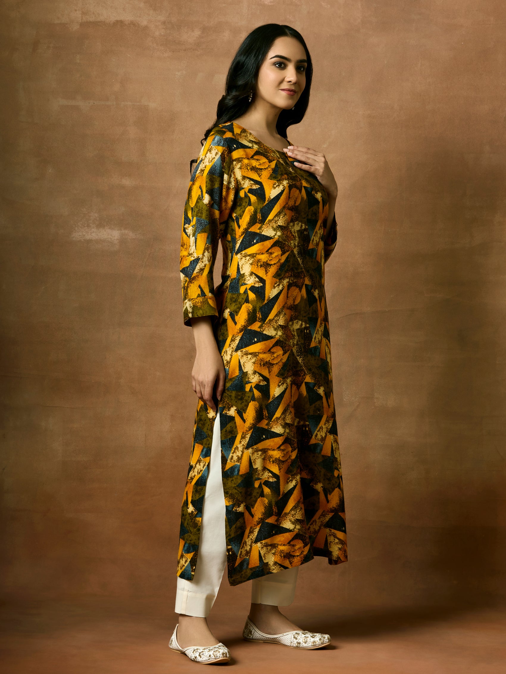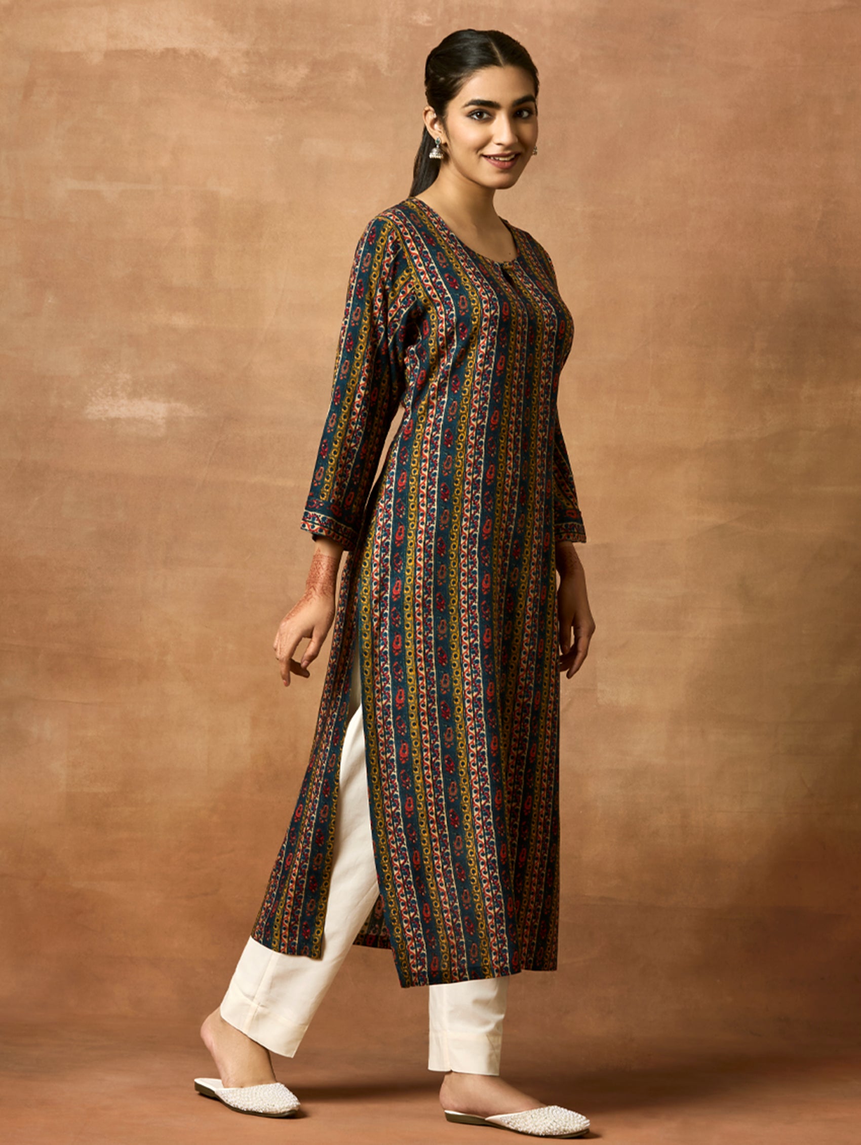 Experience the effortless elegance of this Women Plus kurta. Adorned with a keyhole round neckline and three-fourth sleeves, this kurta is crafted from printed rayon to keep you comfortable and stylish in the scorching summer heat.